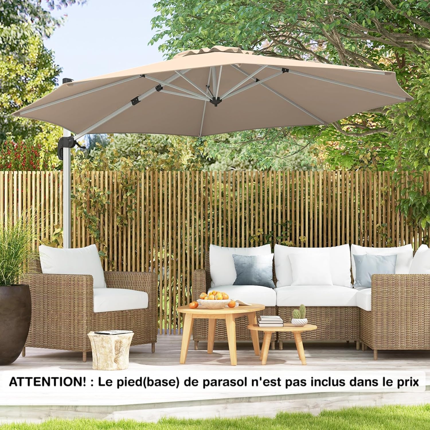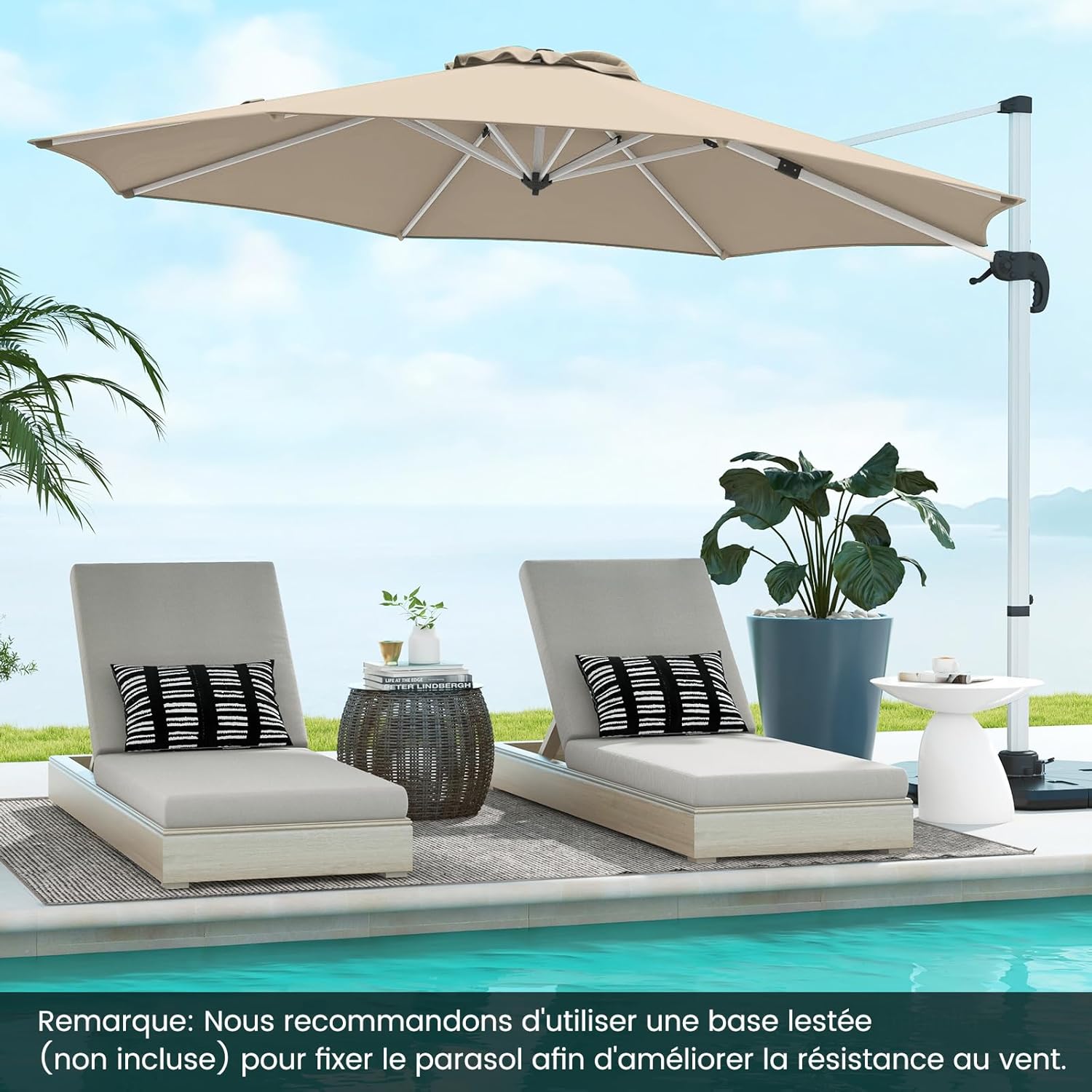| Libellé | Parasol de jardin extérieur parasol déporté inclinable avec manivelle, 8 baleines, double auvent,beige |