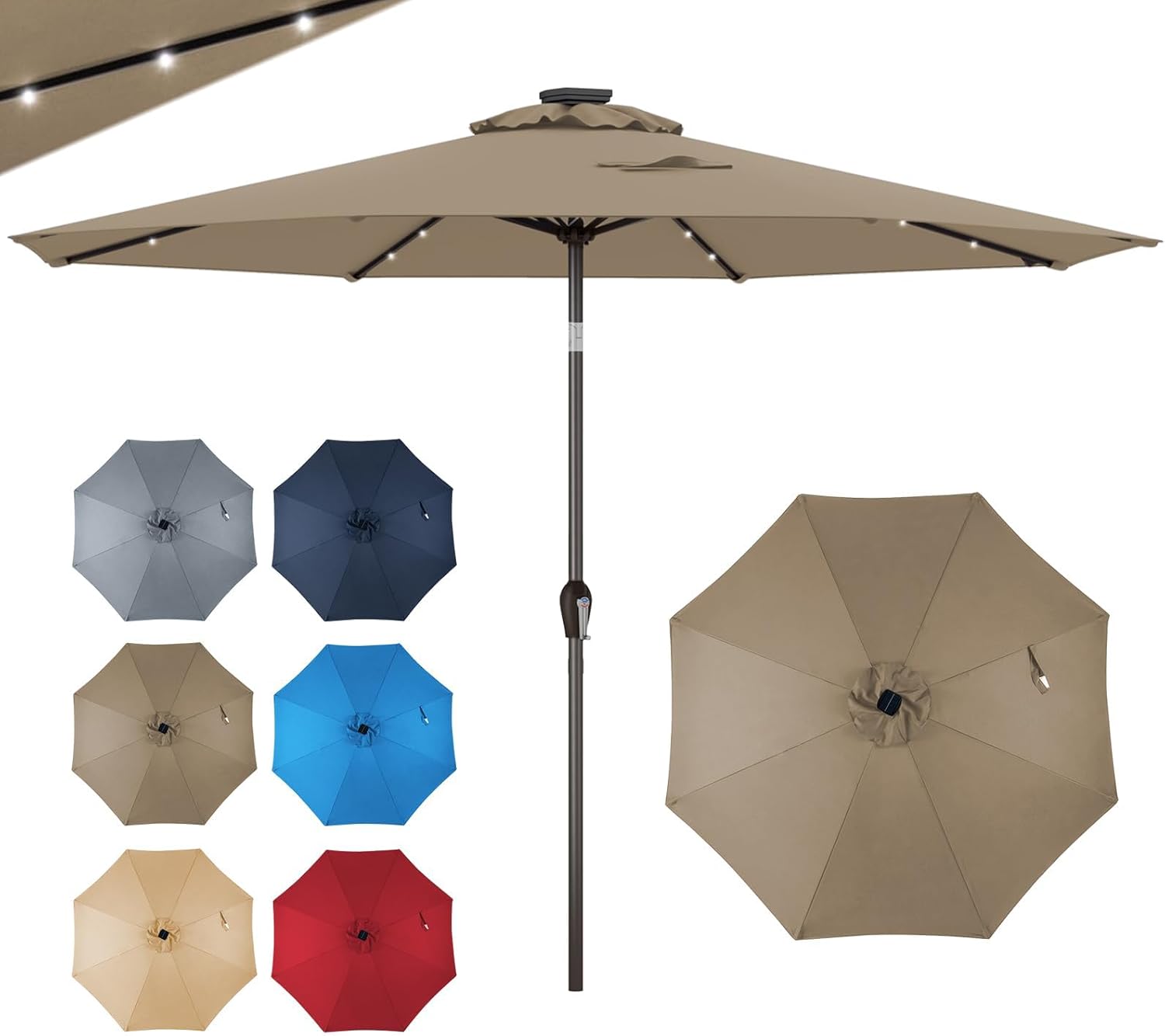 - 24 lampes à LED : Notre parapluie a un total de 8 baleines, chacune avec 3 lampes à LED, un total de 24 lampes à LED, l'énergie solaire peut être utilisée pour charger le parasol lorsqu'il y a suffisamment de soleil. Ce parasol avec LED bloquent la lumière du soleil et les rayons ultraviolets, et il s’éclaire dans la nuit.