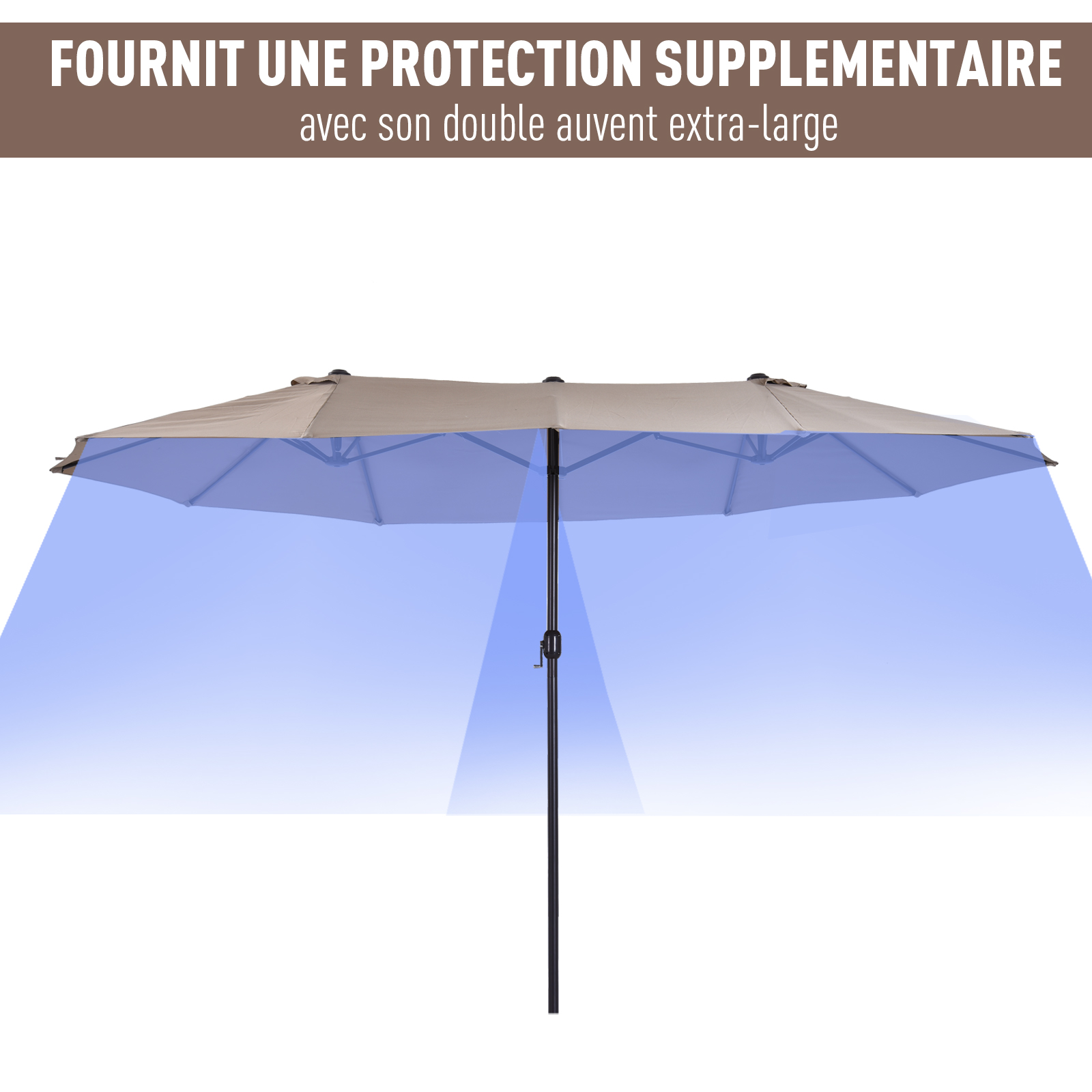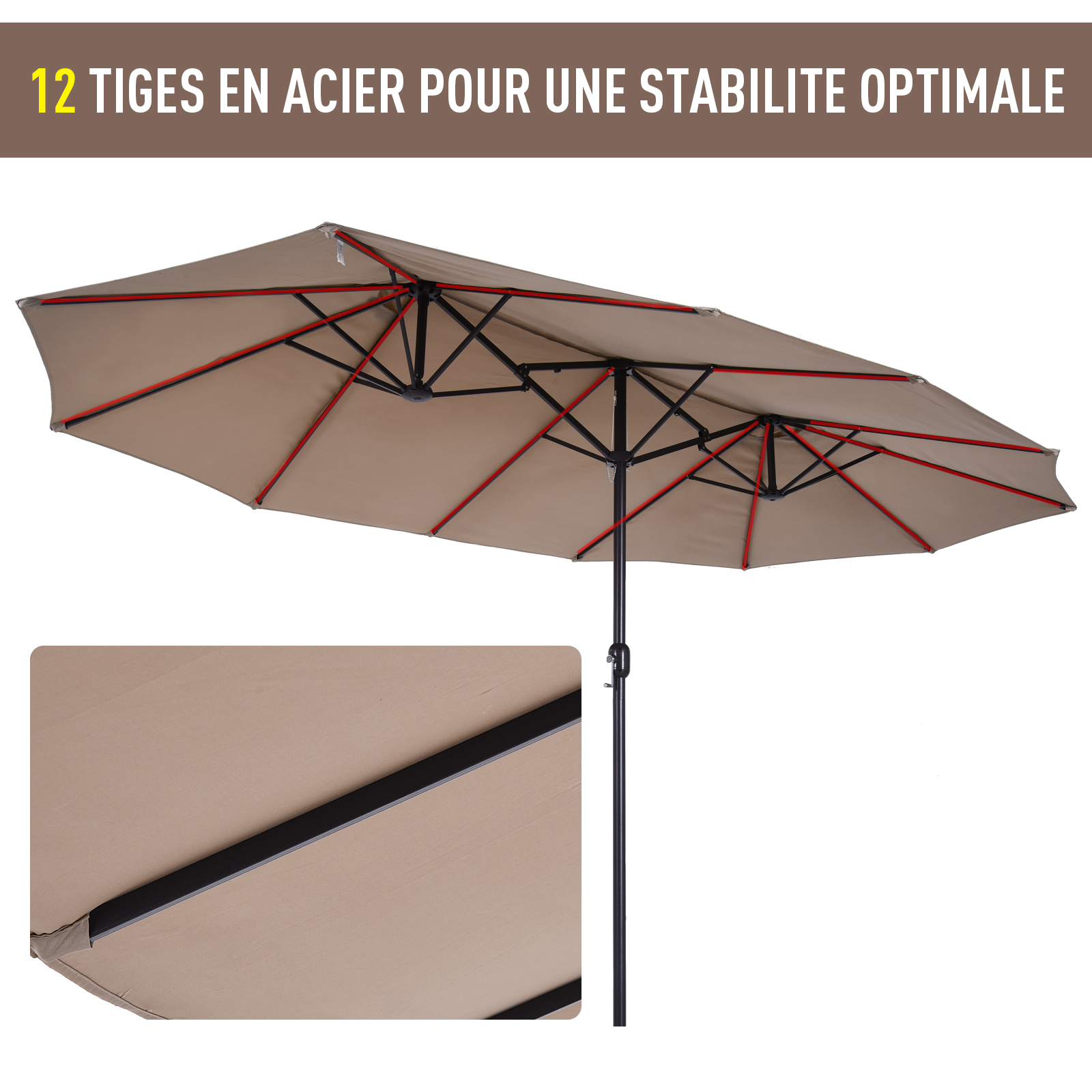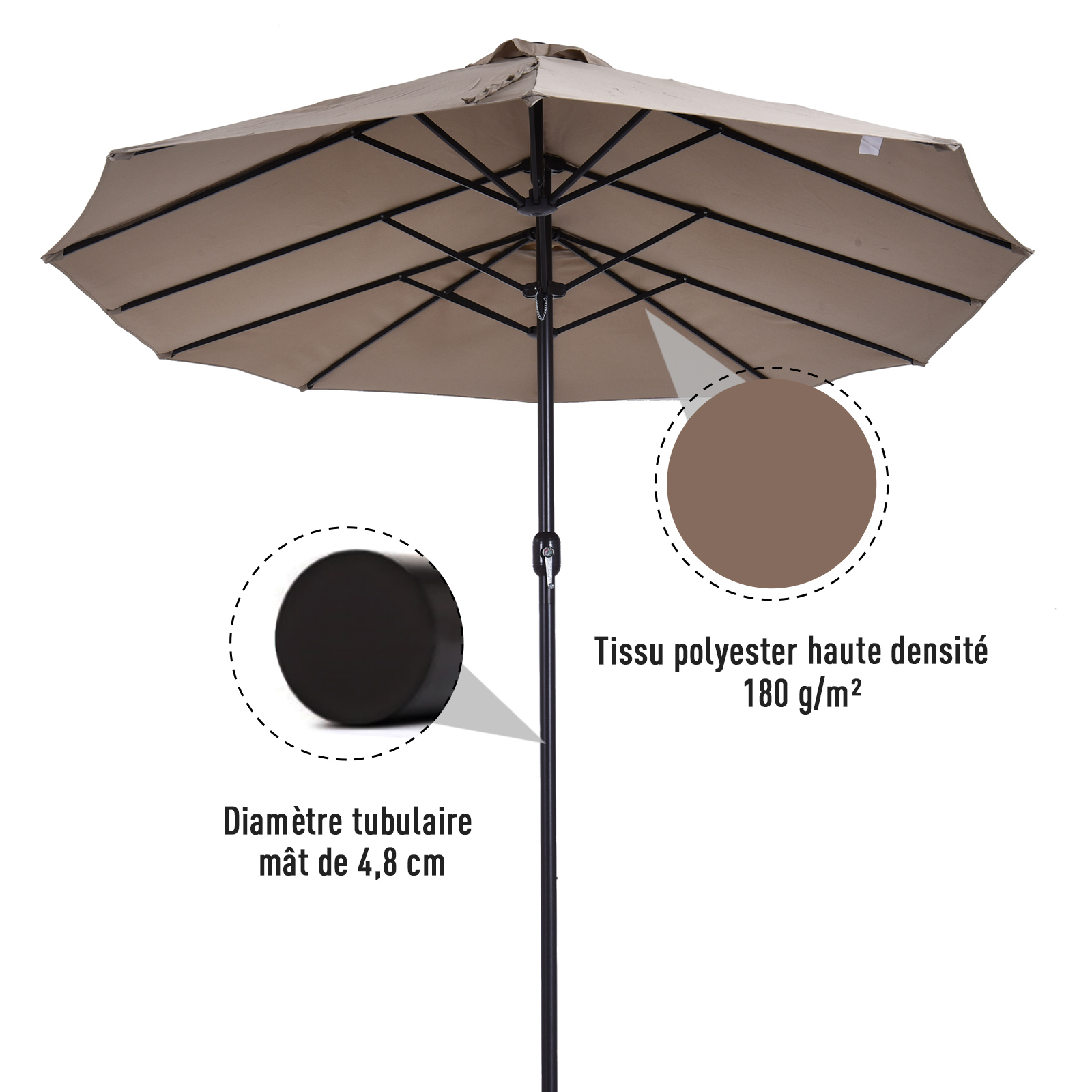 Libellé Parasol de jardin XXL parasol grande taille 4,6L x 2,7l x 2,4H m ouverture fermeture manivelle acier polyester haute densité marron