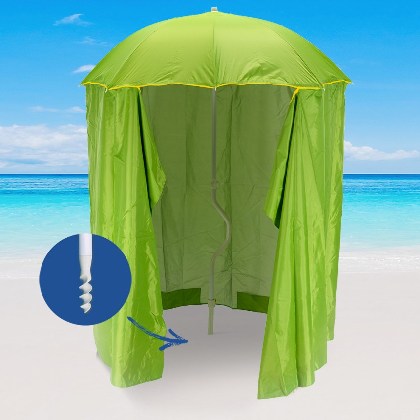 Parasol de plage avec tente de protection UV légère à visser 200 cm.