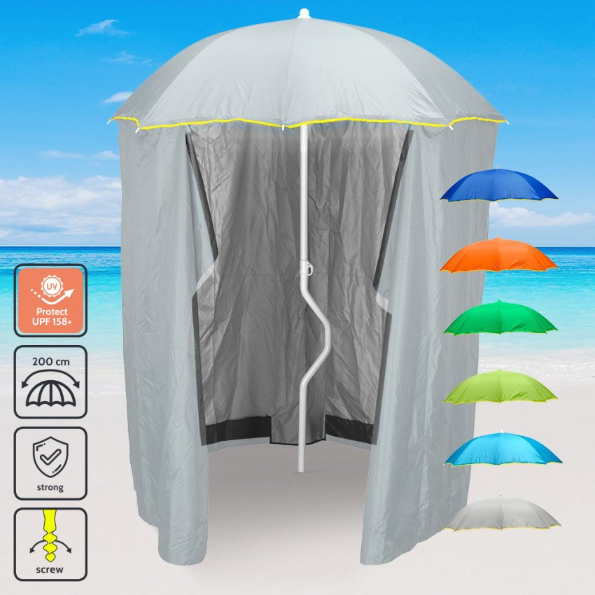 Parasol de plage avec tente de protection UV légère à visser 200 cm.