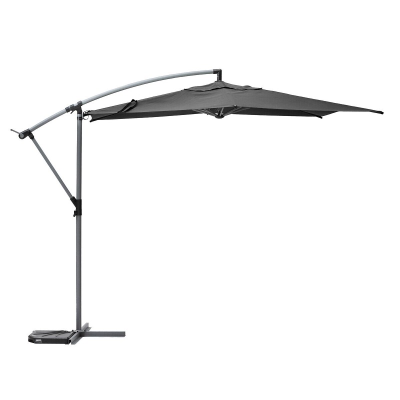 Protégez vous du soleil avec le parasol décentré toile ronde Manoa en coloris ardoise de la marque Hespéride. Les dalles de lestage ne sont pas incluses. Grâce à sa rotation à 360°, vous pourrez profiter de la protection du parasol tout au long de la journée sans même le déplacer. S'ouvre par un système push-up et une manivelle.Sa structure en acier et aluminium traité époxy antirouille assurera une bonne résistance à l'extérieur. La toile carrée en polyester est vissée en bout de baleines pour un maintien efficace de la toile. Elle est traitée déperlante et contre la décoloration. A monter soi même. Garantie 2 ans. La housse de protection compatible JJ146751 est vendue séparément. Dimensions : L. 250 x l. 250 x H. 240 cm. Poids : 13 kg. Matière : Polyester, acier et aluminium. Marque : Hespéride.