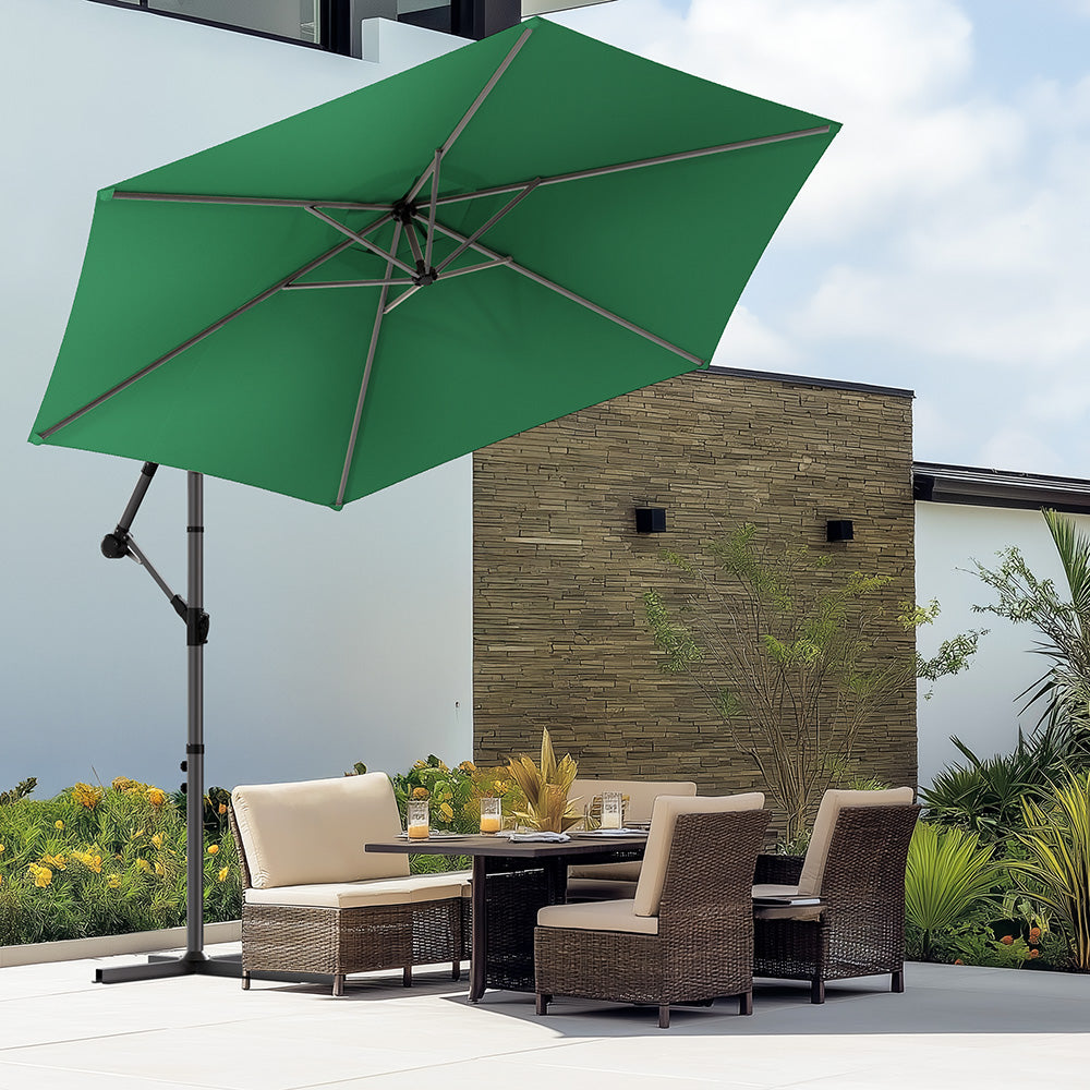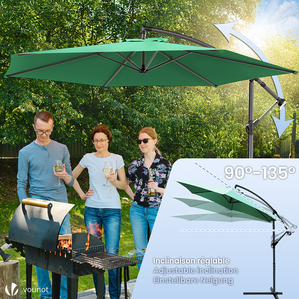 - Notre parasol déporté est équipé d’une toile de 3m afin de créer un bel espace d’ombrage.