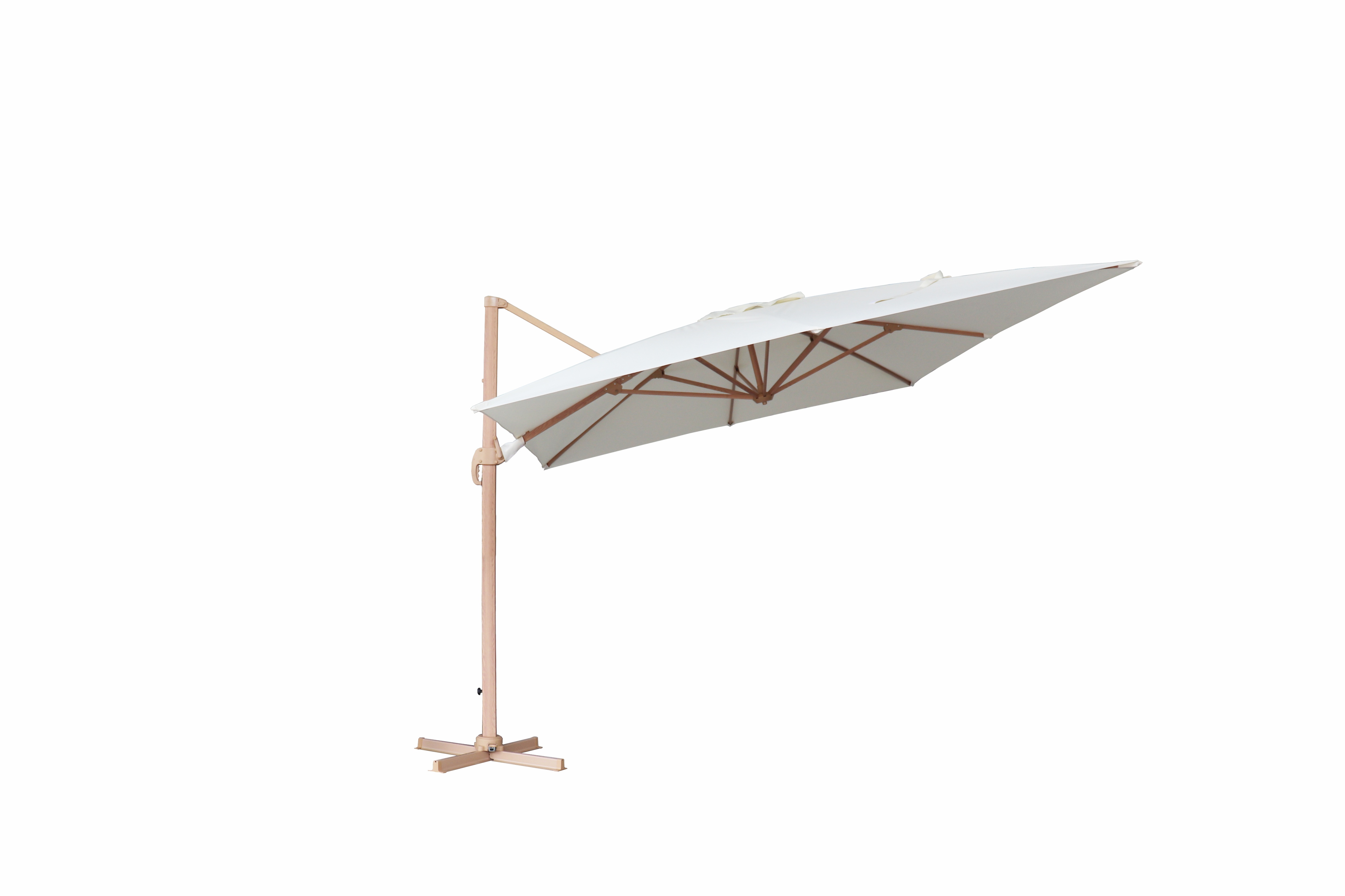| Libellé | Parasol déporté 4x3 m en aluminium imitation bois et toile en polyester coloris écru avec base en croix |