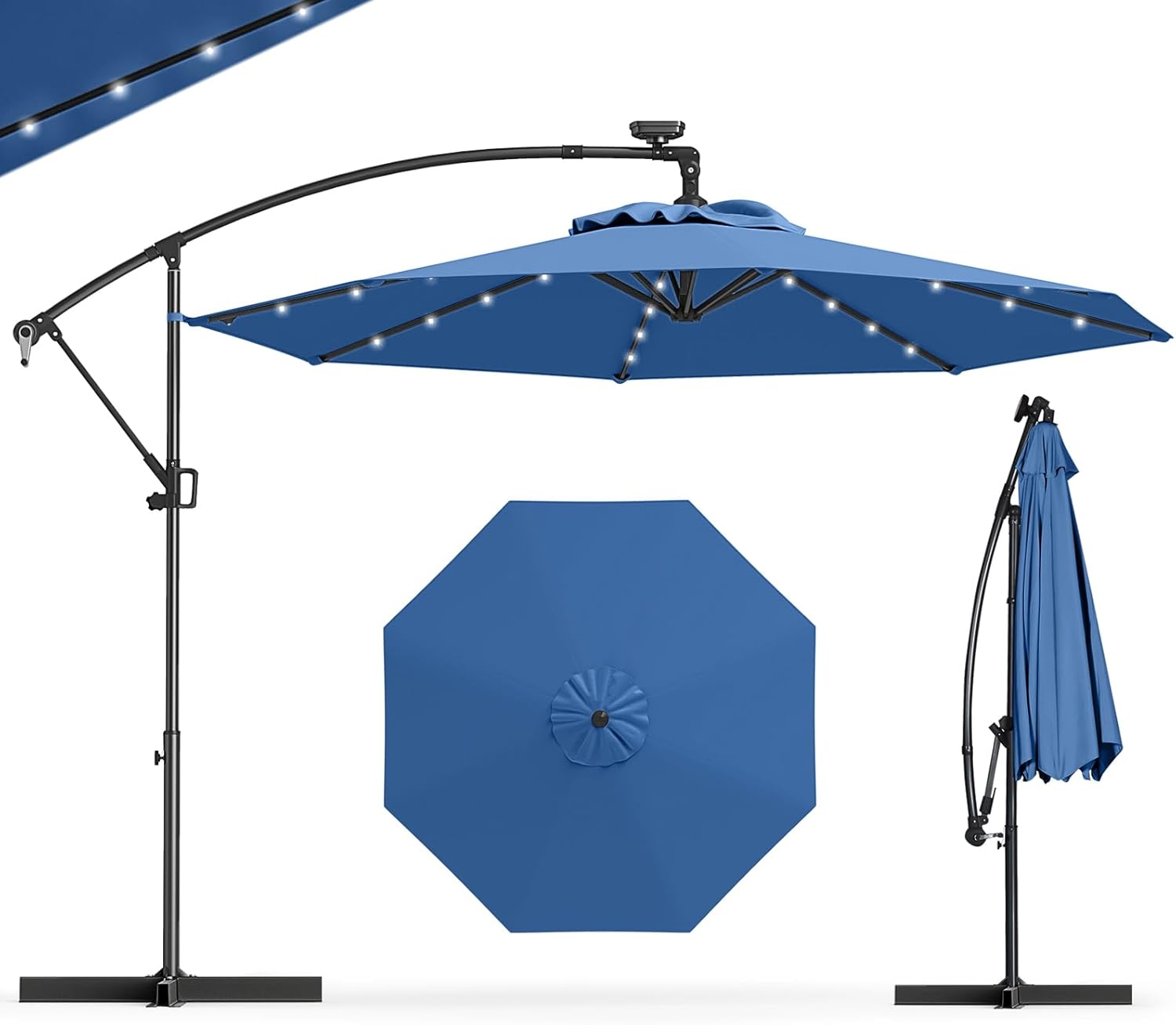 | Libellé | Parasol deporte avec 32 led solaires, parasol de jardin extérieur 8 baleines base non incluse bleu |