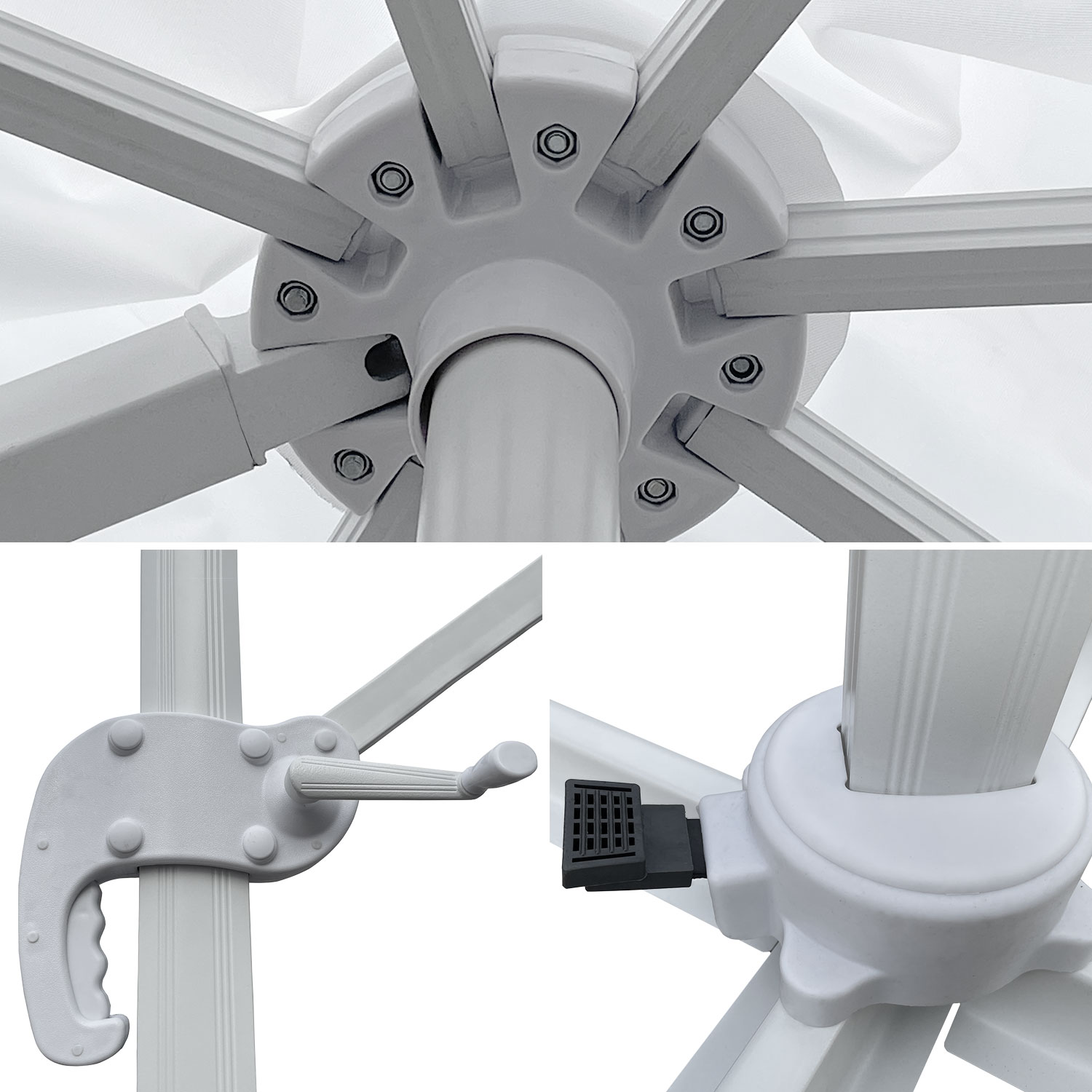 | Système d'ouverture (parasol) | A manivelle |