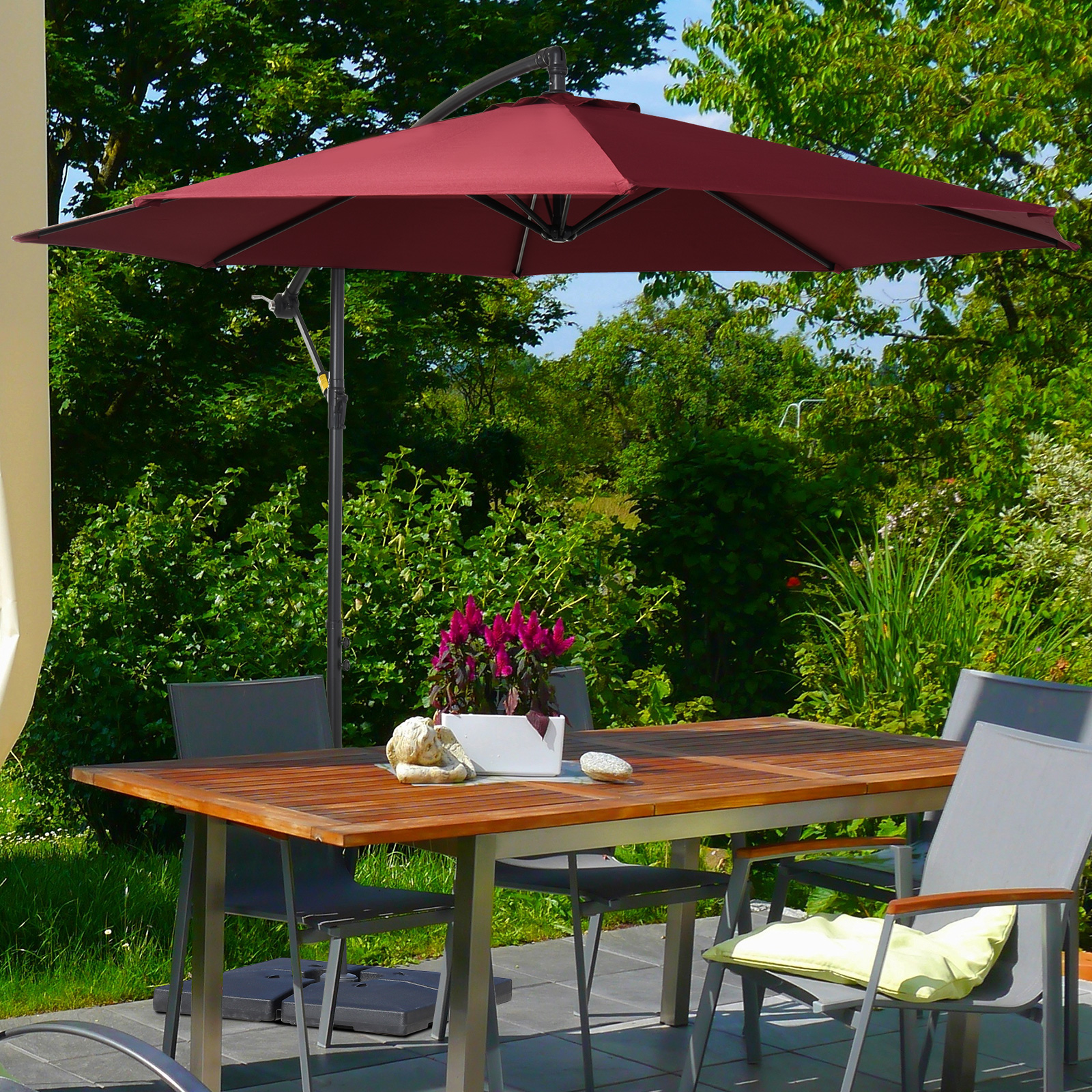 | Libellé | Parasol déporté octogonal inclinable manivelle avec pied en acier Ø 3 x 2,5H m bordeaux |