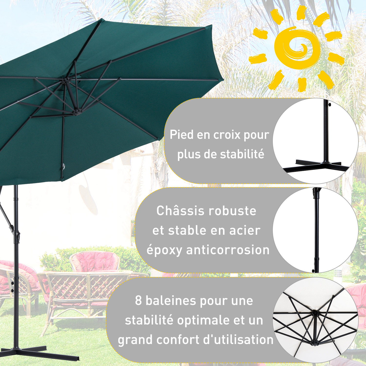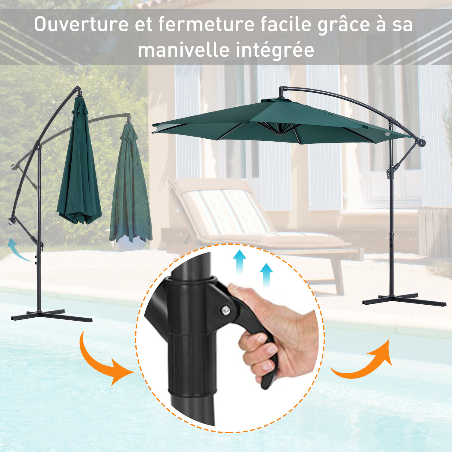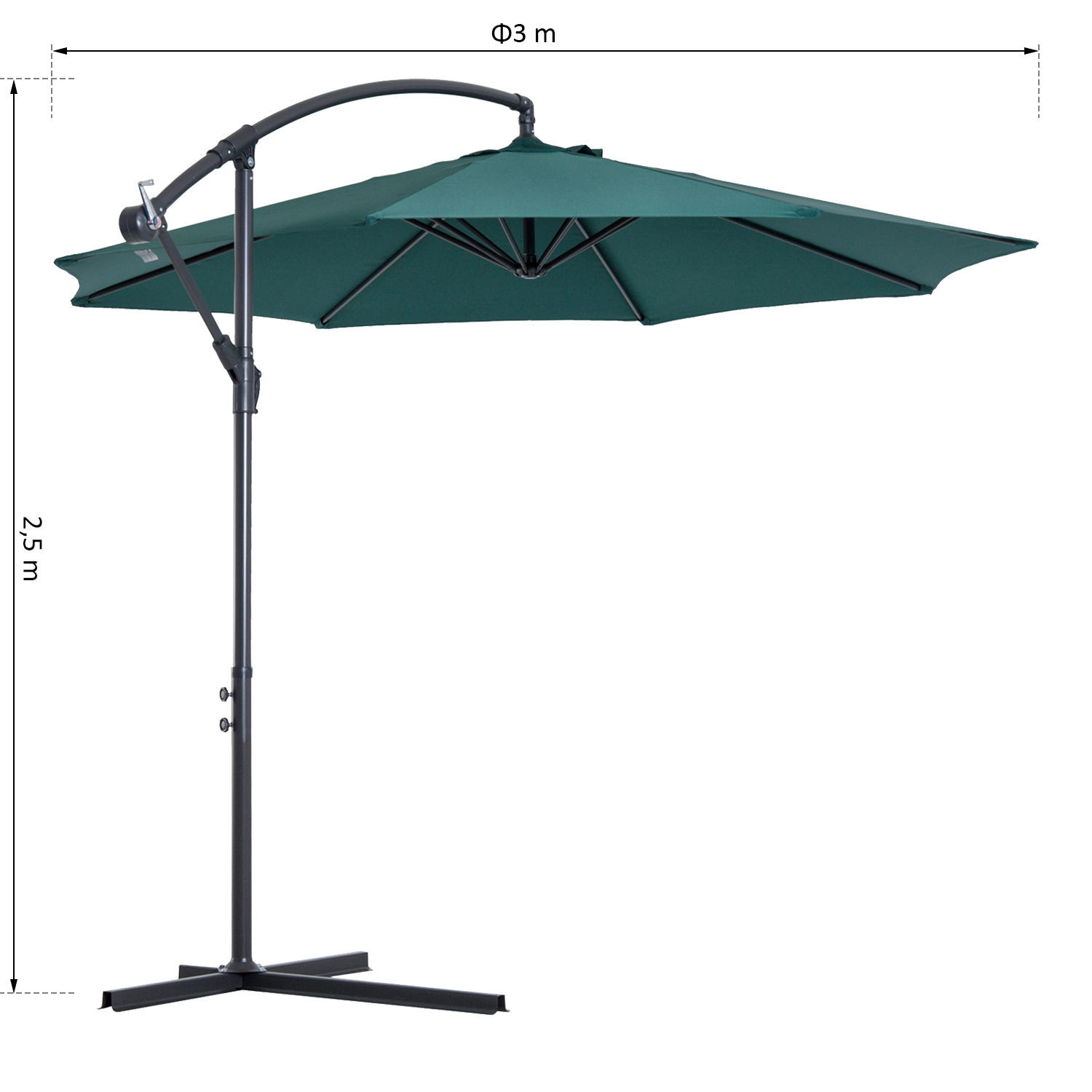 | Libellé | Parasol déporté octogonal inclinable manivelle avec pied en acier Ø 3 x 2,5H m vert |