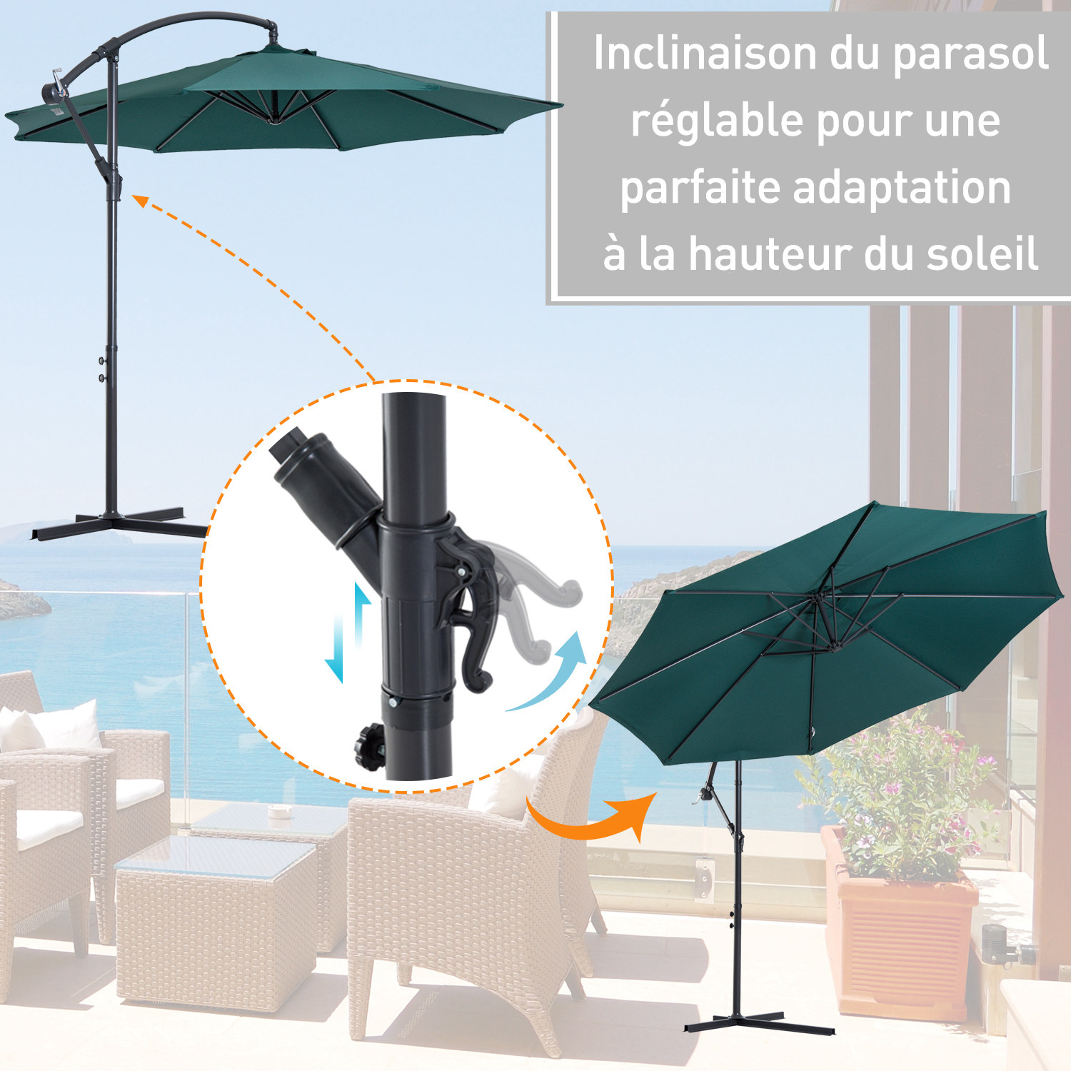 Parasol déporté octogonal inclinable manivelle avec pied en acier Ø 3 x 2,5H m vert