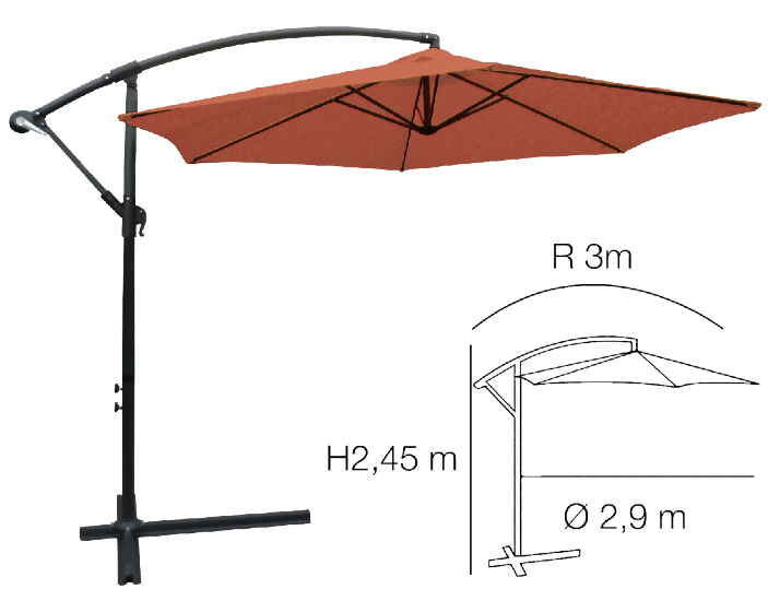 14-700741 - parasol déporté rond collioure diamètre 3m - terre cuite - Ce parasol déporté sera votre allié pour les temps ensoleillé.