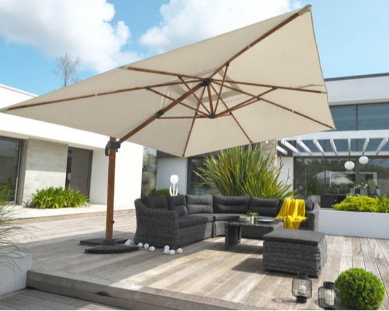 | Libellé | Parasol déporté SEVILLA 4x3m aluminium bois et polyester DCB Garden |