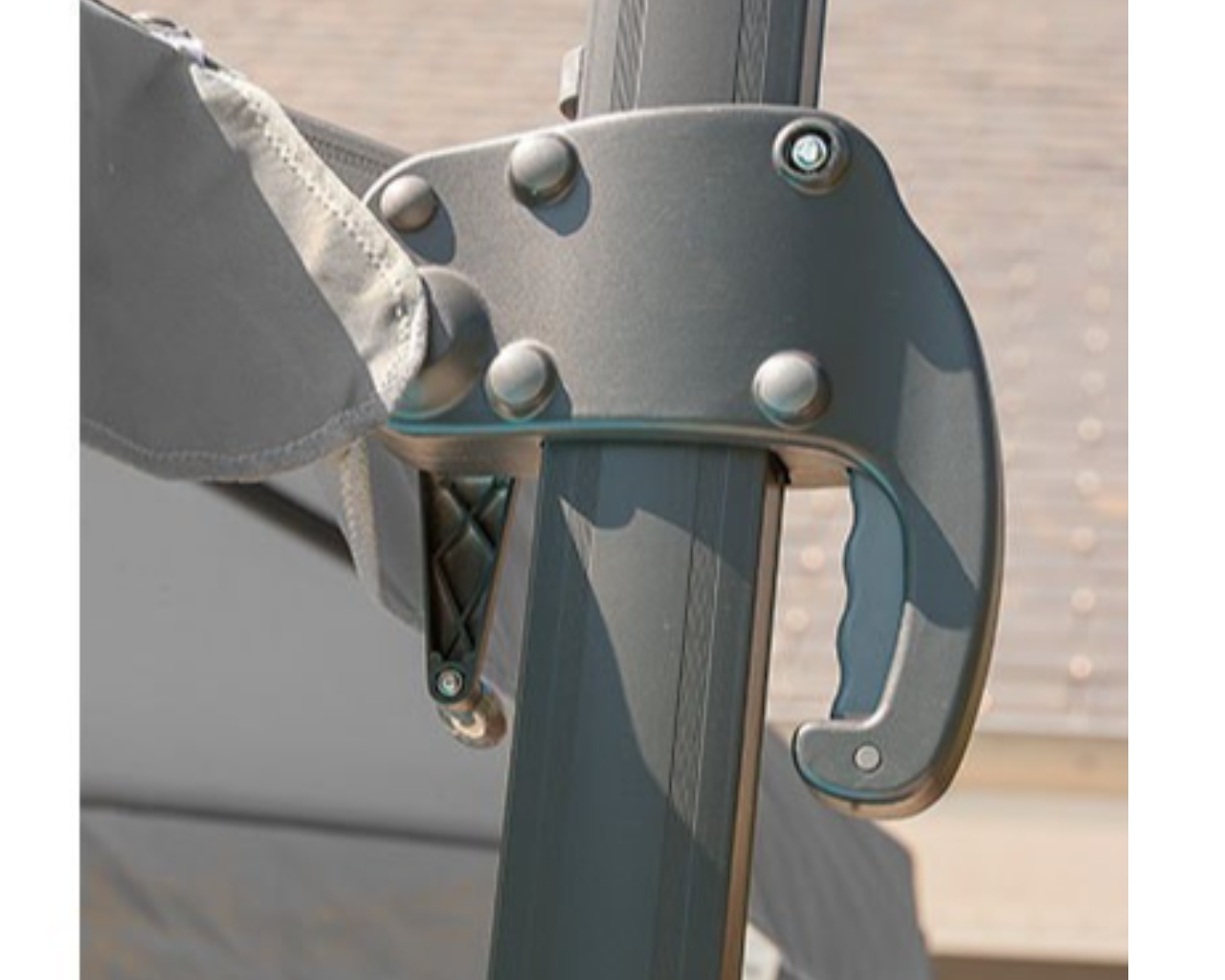 Parasol déporté SEVILLA, dimensions 4x3 m,matériau aluminium, forme toile rectangulaire, matière toile polyester, couleur grisargent, grammage couverture 230 gm², hauteur au centre 265 cm, poids 24 kg
