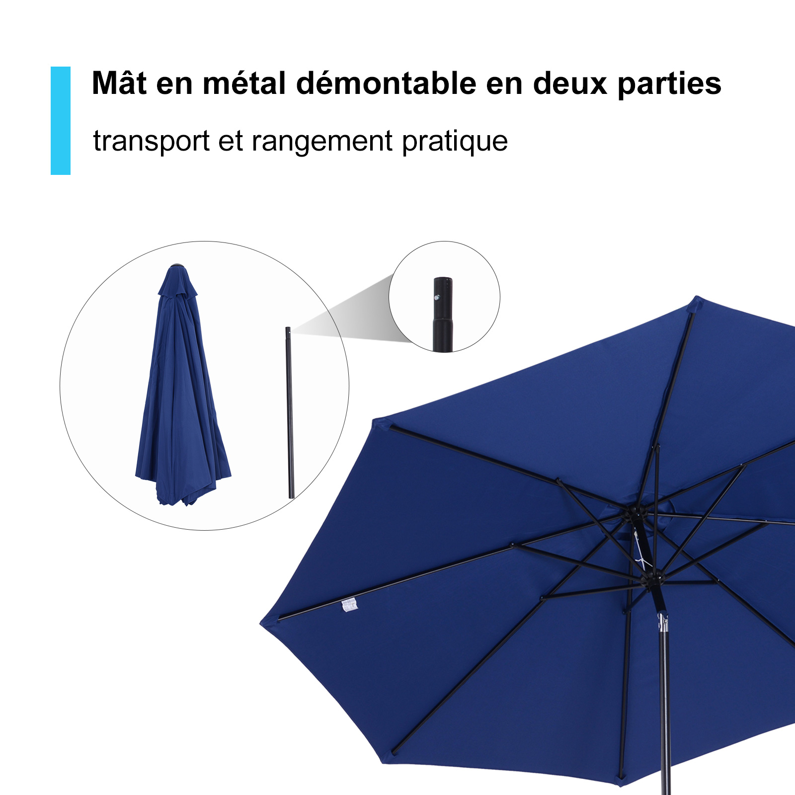 Parasol en aluminium rond polyester 180g/m² manivelle inclinable Ø 3 x 2,45 m bleu