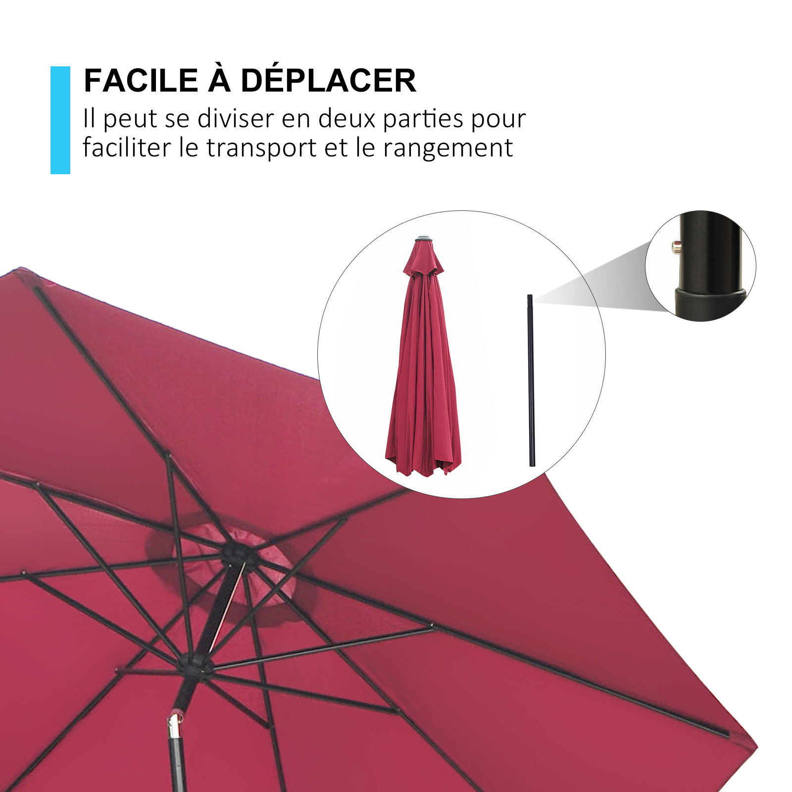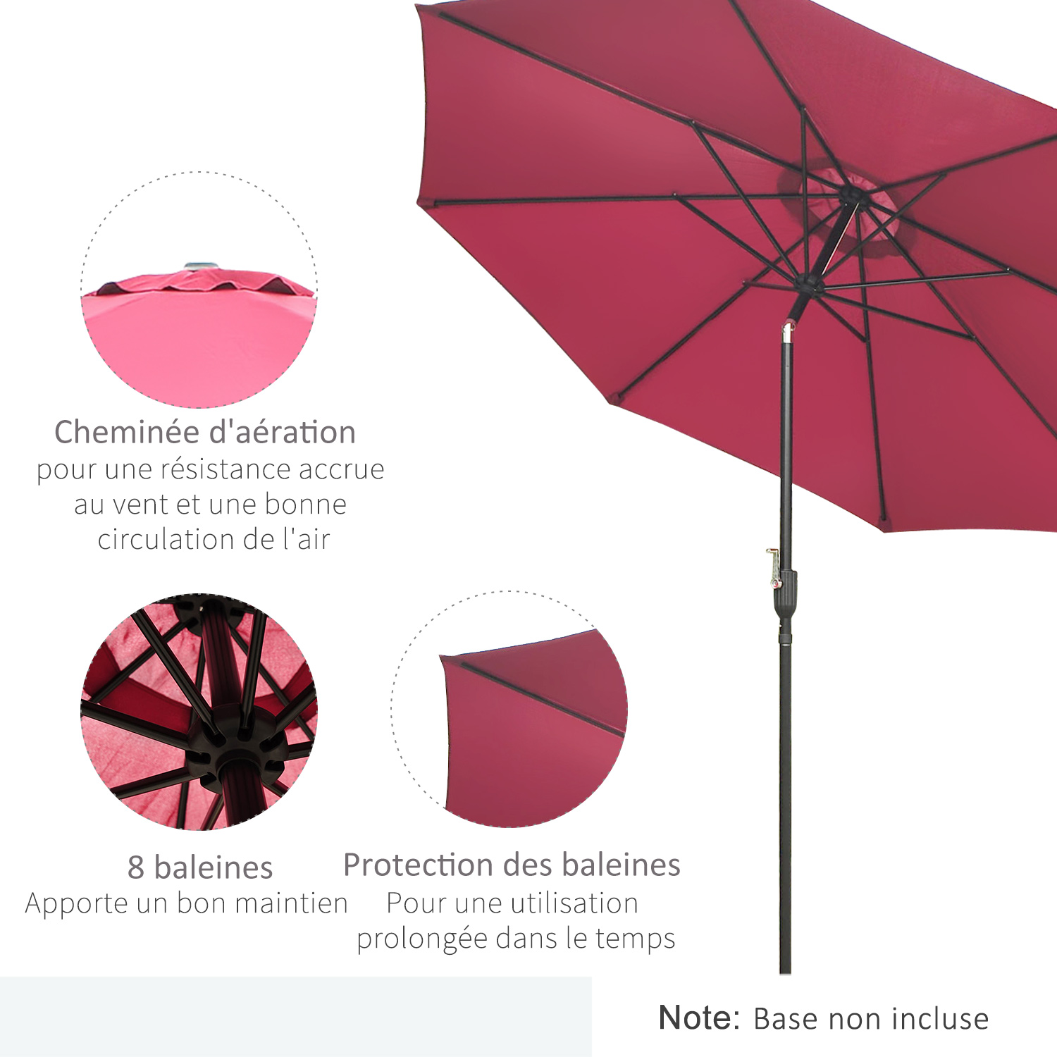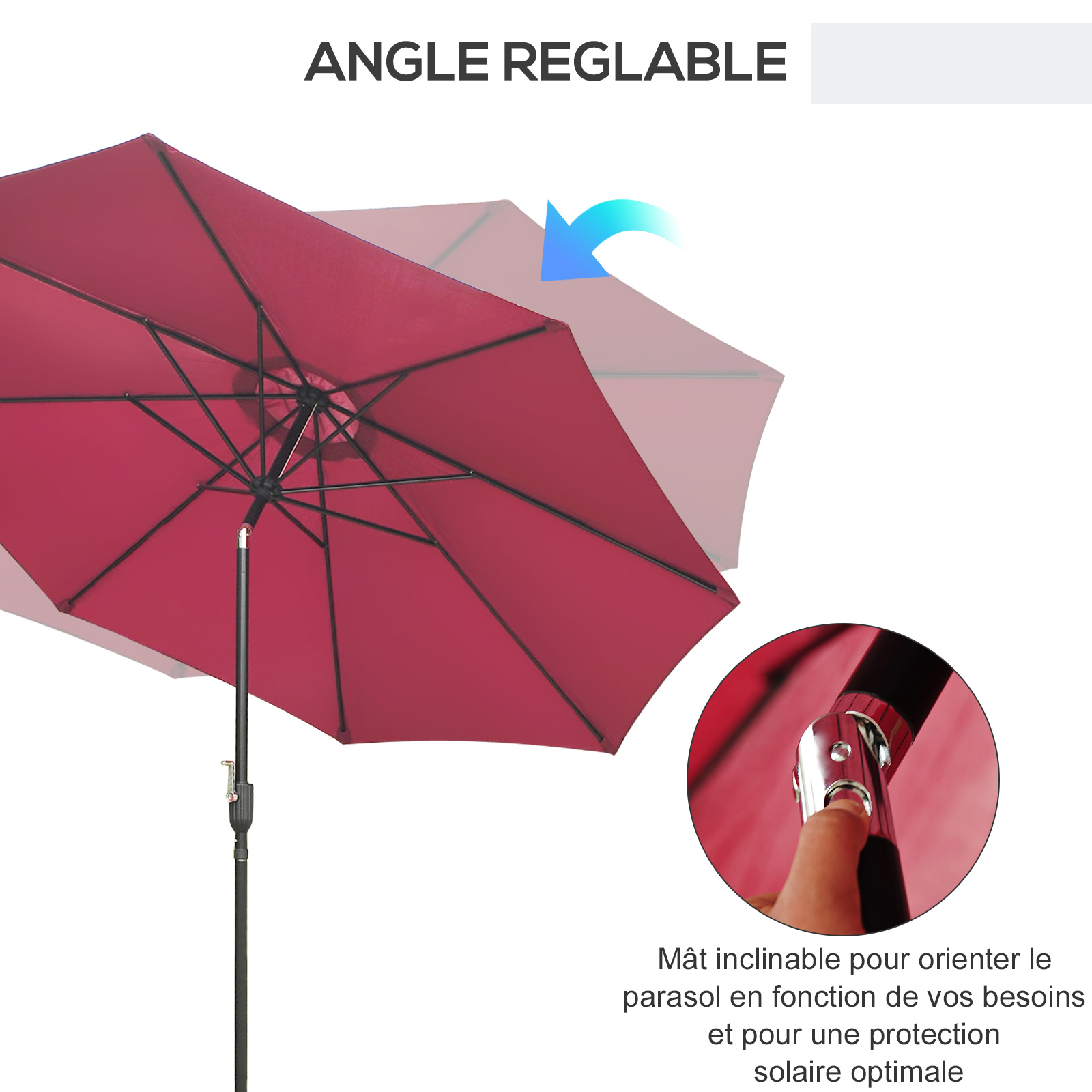 Parasol en aluminium rond polyester 180g/m² manivelle inclinable Ø 3 x 2,45 m bordeaux