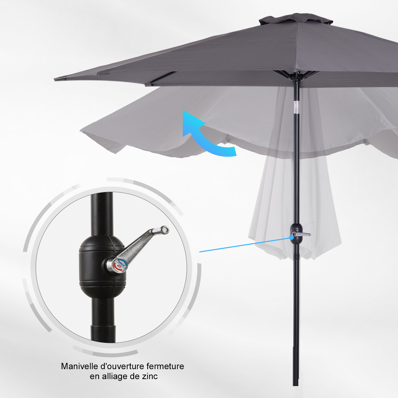 Parasol en aluminium rond polyester 180g/m² manivelle inclinable Ø 3 x 2,45 m gris