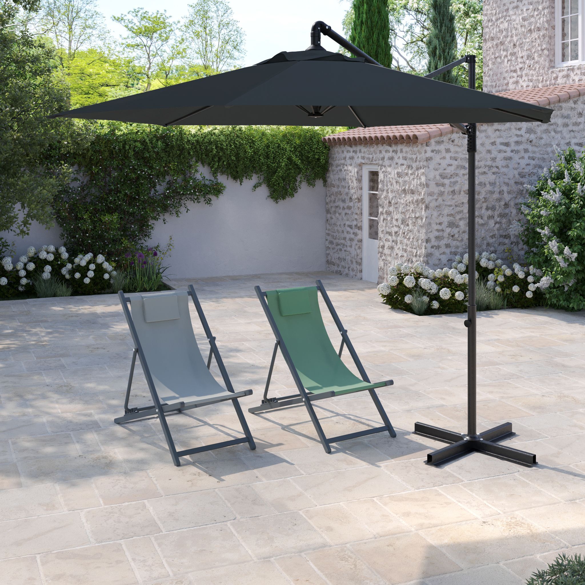 Parasol excentré rond diamètre 267cm, anthracite - Sélection d'Experts - Beaux Jours