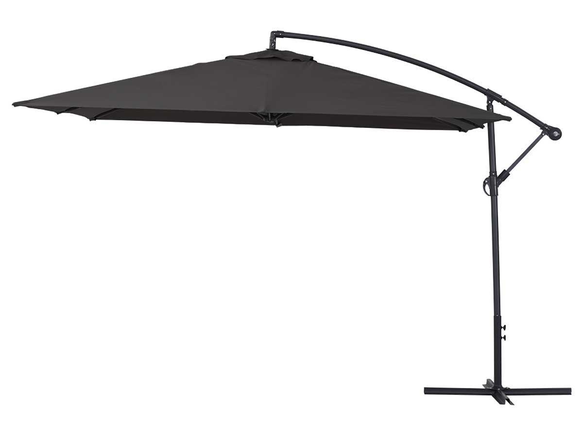 Parasol jardin déporté Ilios 3 - Structure en aluminium qui résiste à la corrosion - Toile en polyester, traitée anti-UV - Afin de conserver votre parasol le plus longtemps possible, n'hésitez pas à le fermer lorsque vous ne l'utilisez pas et à le ranger à l'abri dans un endroit sec et/ou sous une housse de protection. Couleur : Noir. Toile : Noir. Mât : Gris foncé. Baleines : Gris foncé. Toile : Polyester - Densité 160gr/m². Structure : Aluminium. Parasol : Ouvert : 2.98 x 2.98 x 2.53 cm - Fermé : 0.4 x 0.2 x 2.4 m. Poids : 16.3 kg. Toile : 3 x 3 m. Taille : 3 x 3 m. Mât : Ø 48 mm - Hauteur : 195 cm. Baleines : 6 Baleines - Acier - Dimensions : 21 x 12 x 0.6 mm. Socle : Pied en croix - 99.8 x 100 x 6 cm. - Rabattable - Déperlant - Anti-UV - Anti corrosion - Aération au sommet. Livraison : Livré à monter. Colisage : 1 colis : - 1,86 x 0,33 x 0,15 m, 18,6 kg.