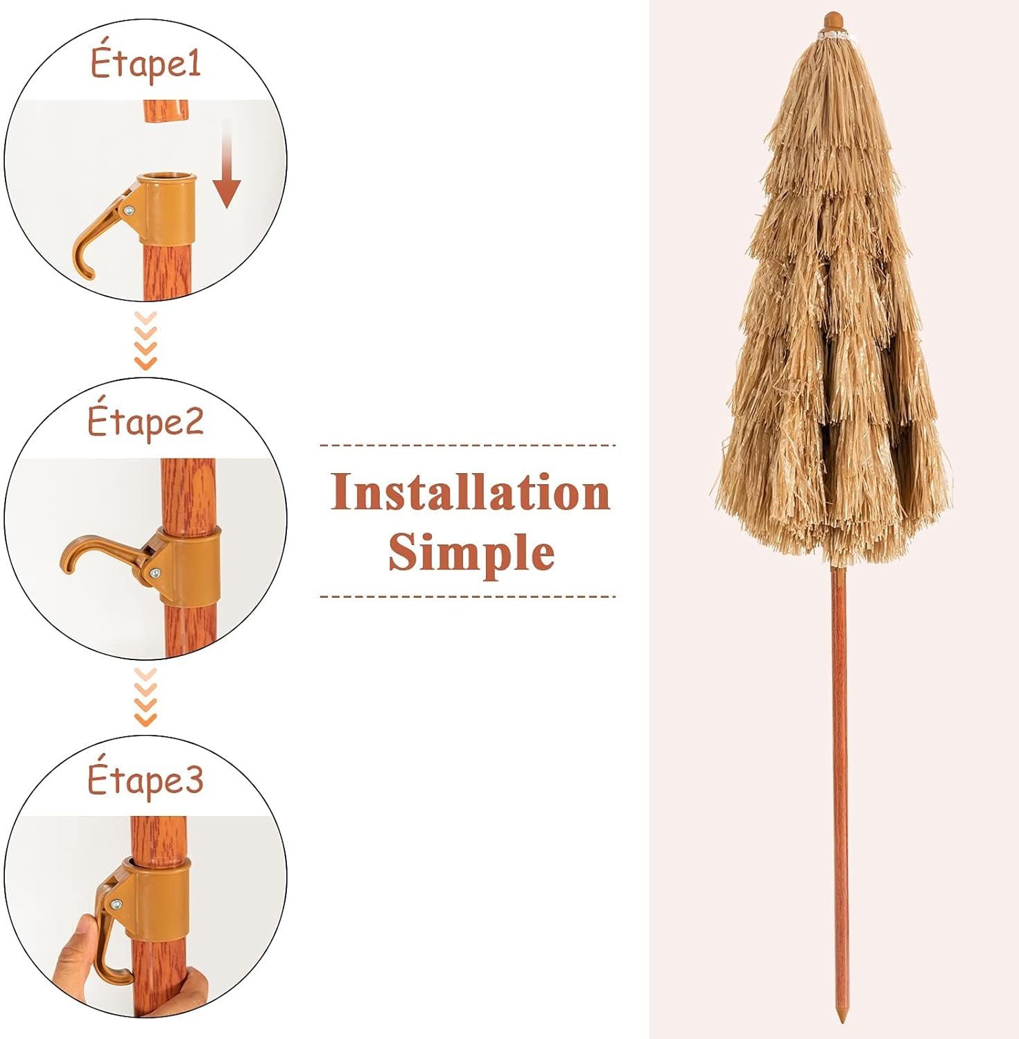 | Libellé | Parasol paille de plastique,parasol de plage réglable pliant en chaume de pp, base non incluse |