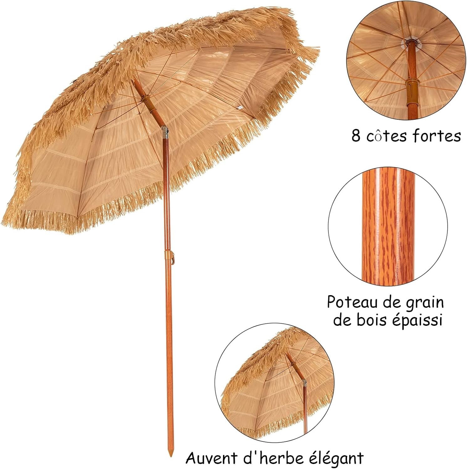- Parasol idéal : Du style exotique avec le bord drapé, ce parasol est élégant et généreux et un équipement indispensable pour jouer sur la plage, dans le jardin ou dans la piscine. Ce parasol imperméable, ventilé et non décoloré est un excellent compagnon pour la protection contre la lumière du soleil.