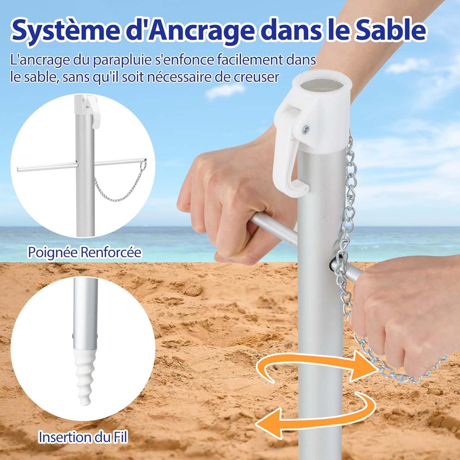 - Parasol Anti-UV : Vous recherchez un parasol de qualité supérieure pour vos voyages à la plage? Notre parasol est une solution parfaite pour vous. Il a un revêtement UV argenté à l'intérieur pour une protection solaire supplémentaire.