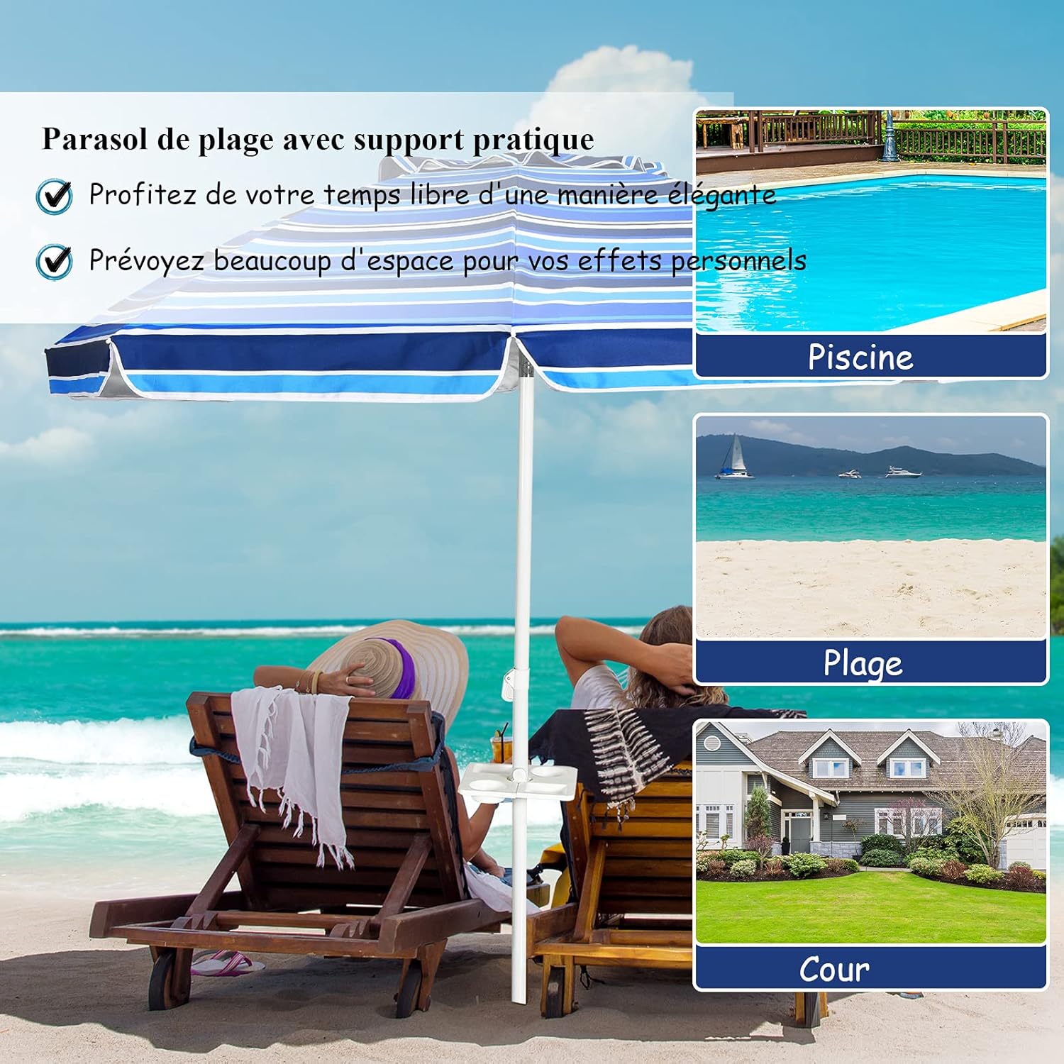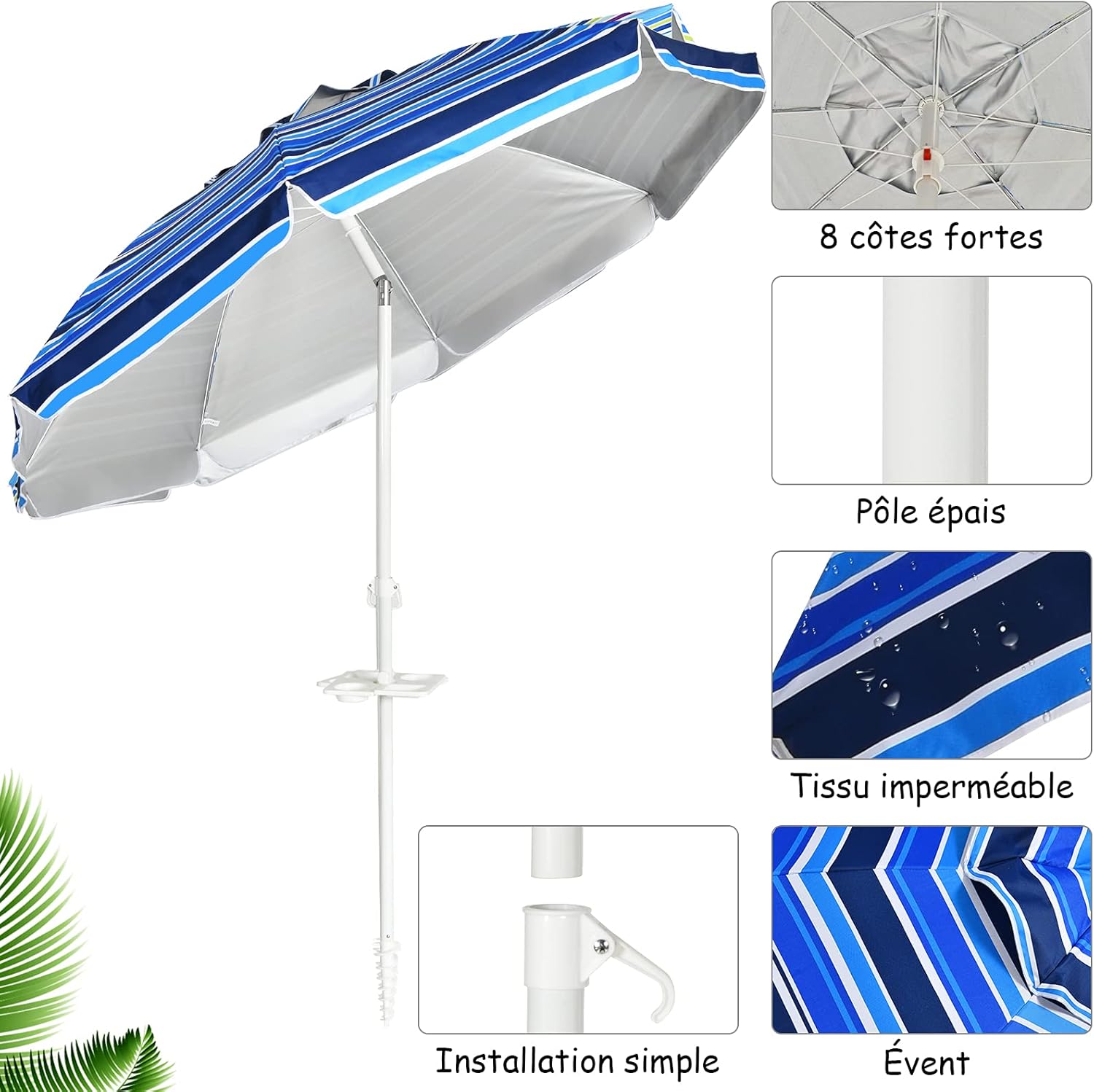 | Libellé | Parasol plage inclinable porte-gobelet parasol de jardin patio terrasse protection solaire bleu foncé |