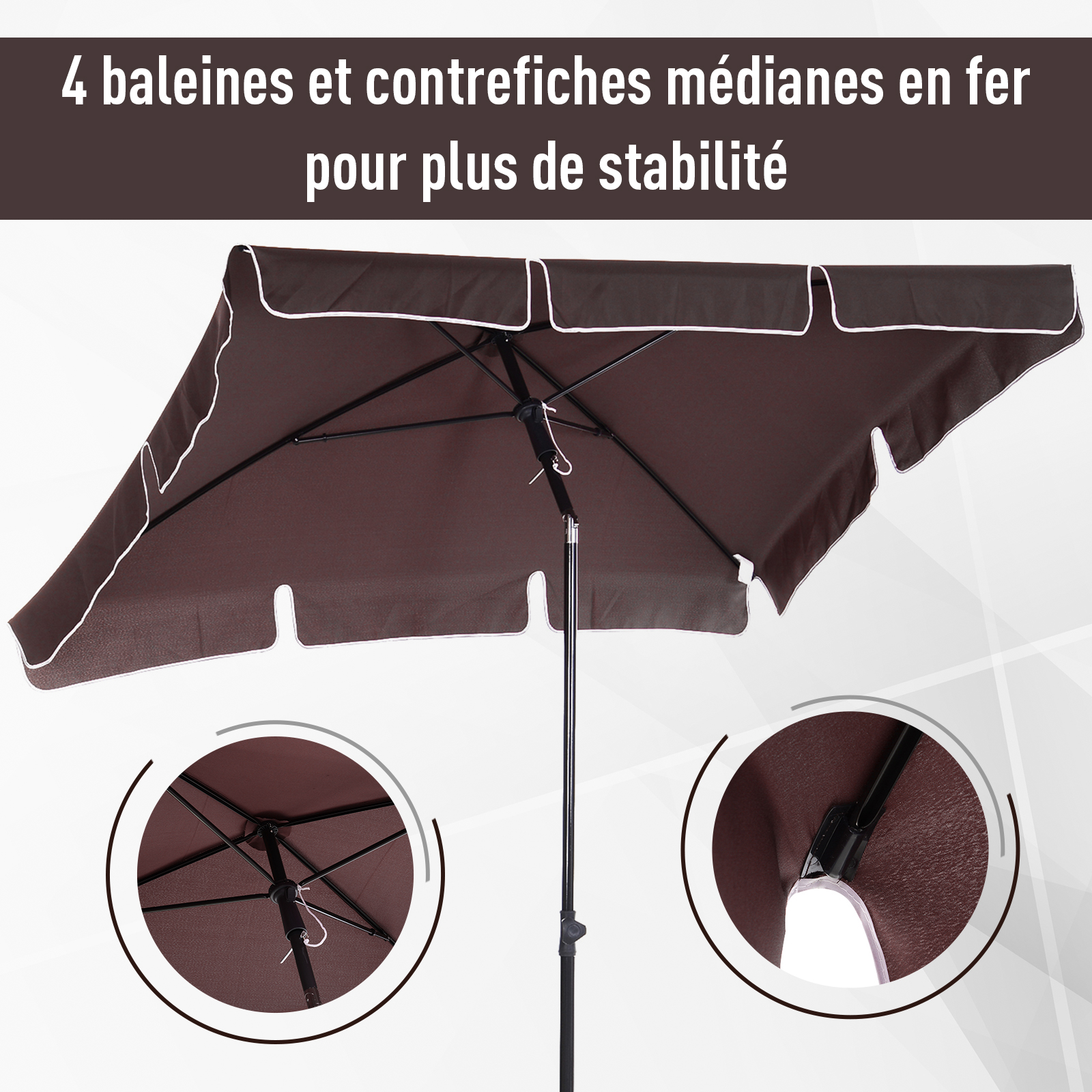 Parasol rectangulaire inclinable alu acier polyester haute densité diamètre 2 m chocolat