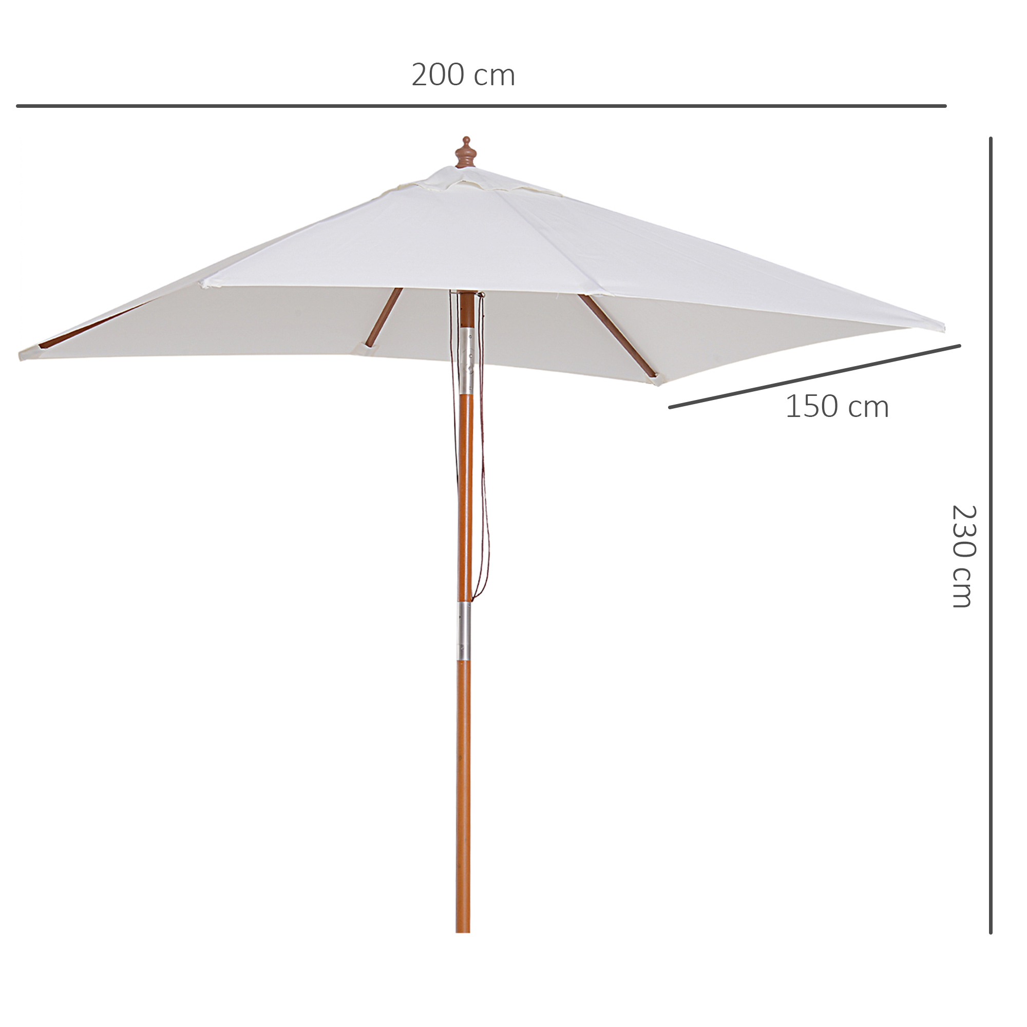 | Libellé | Parasol rectangulaire inclinable bois polyester haute densité 2L x 1,5l x 2,3H m crème |