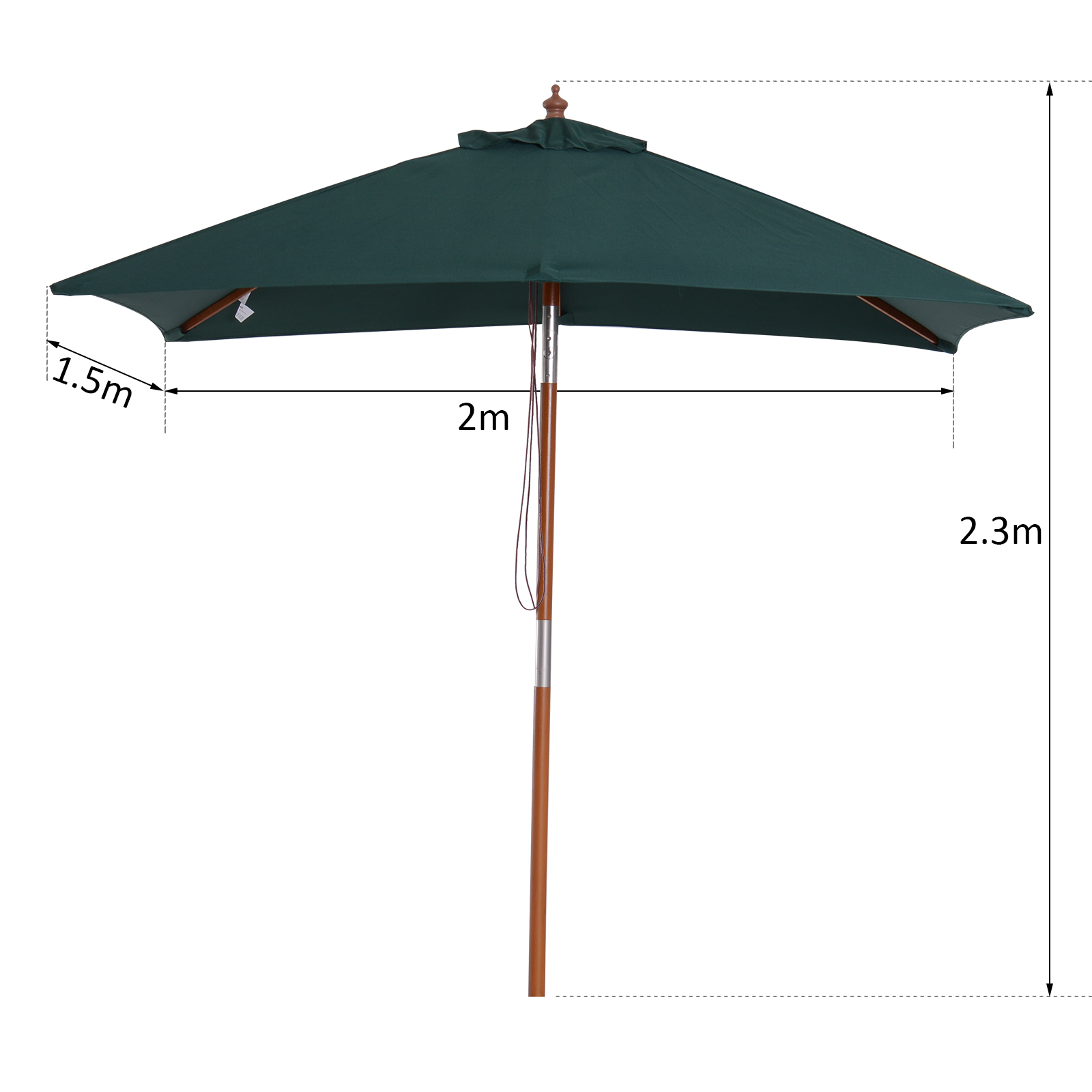 | Libellé | Parasol rectangulaire inclinable bois polyester haute densité 2L x 1,5l x 2,3H m vert foncé |