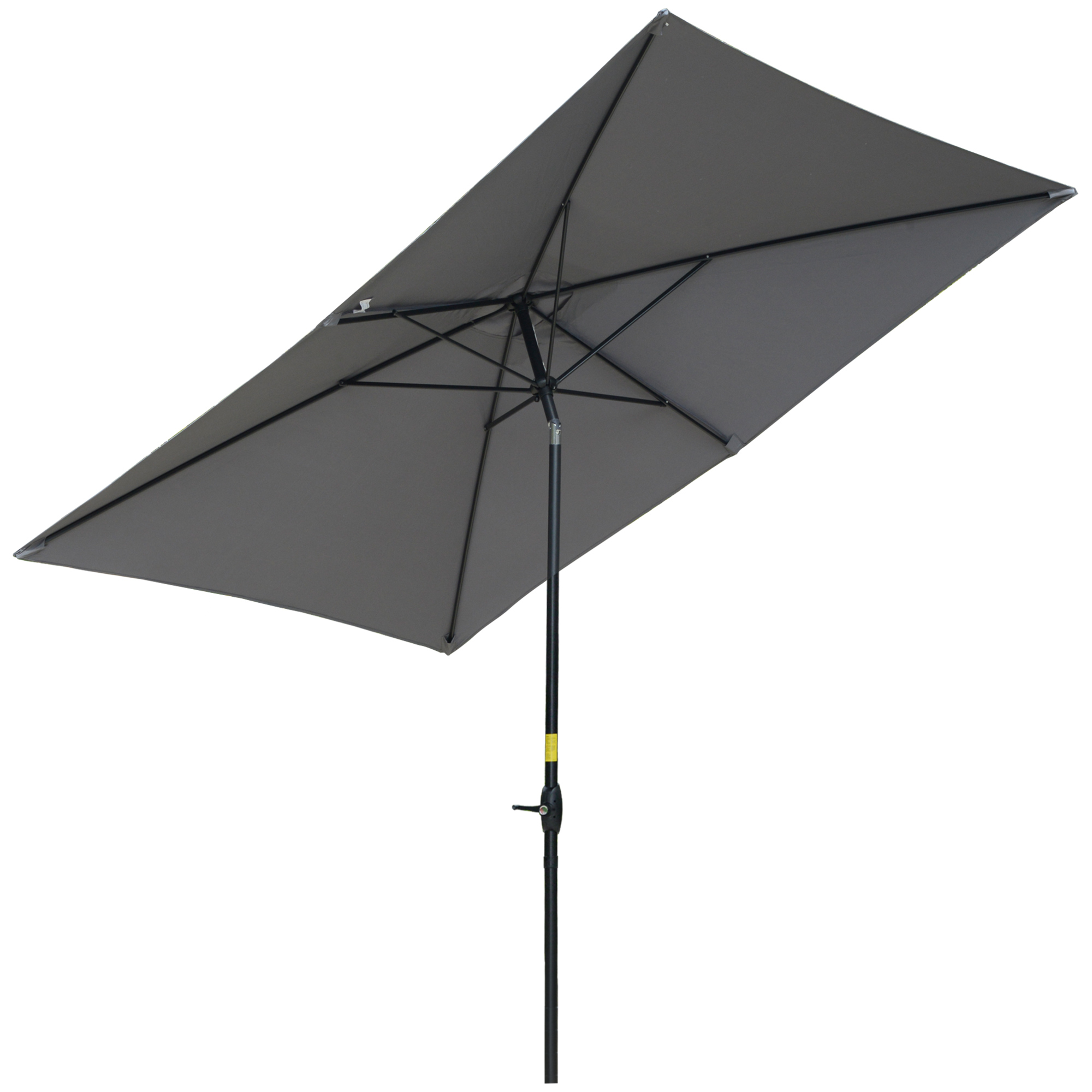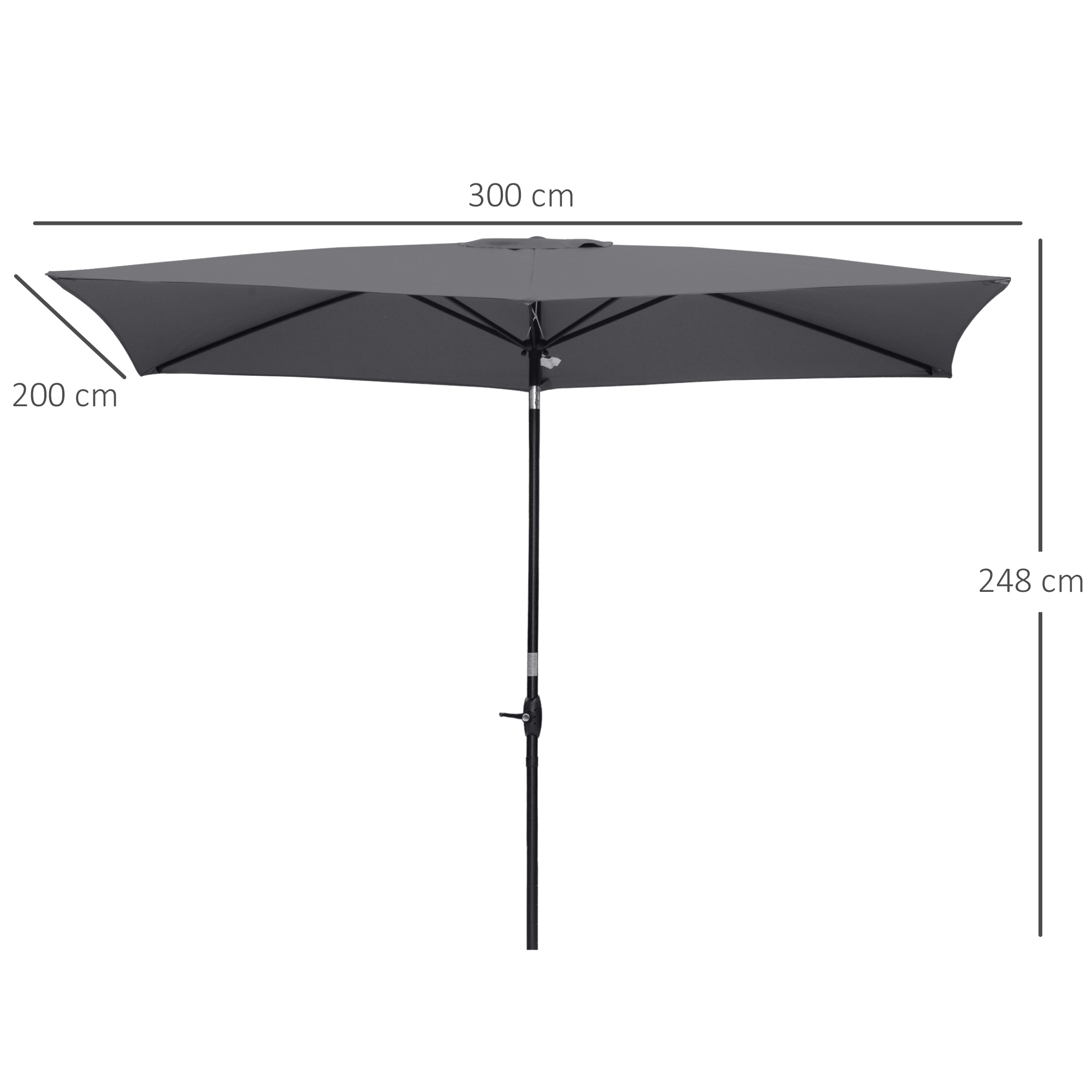| Libellé | Parasol rectangulaire inclinable de jardin avec manivelle dim. 3L x 2l x 2,48H cm alu. métal polyester haute densité anti UV 50+ gris |