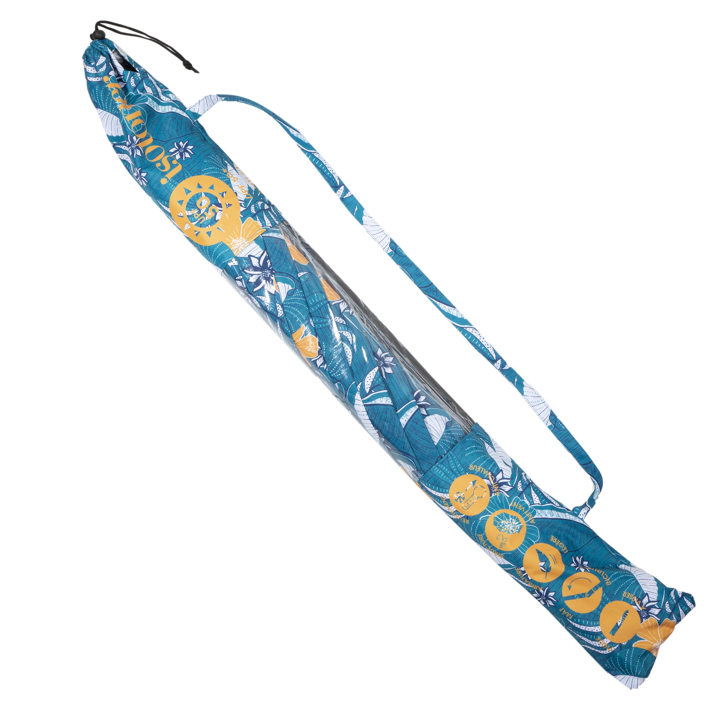 Le parasol de plage Isotoner allie innovation et protection solaire optimale. Son revêtement vert ANTI UV UPF50+ bloque au moins 95 % des rayons UV et rafraîchit l’ombre de -2 à -3 °C. L’armature en aluminium et fibre de verre garantit résistance au vent et légèreté, tandis que le sommet ajouré améliore la tenue et la circulation de l’air. Le mât réglable de 135 à 180 cm et inclinable à 360° se fixe facilement dans le sable ou la terre grâce à son pied pique à visser. Sa large toile protège efficacement, et son poids léger (1,38 kg) permet un transport facile : plié, il mesure 115 cm et se range dans sa housse avec bandoulière. Dimensions : 180 cm en arc, 160 cm de diamètre. Conseil : lunettes, chapeau, crème solaire et hydratation restent nécessaires même sous le parasol, notamment face aux réverbérations du sable et de l’eau.