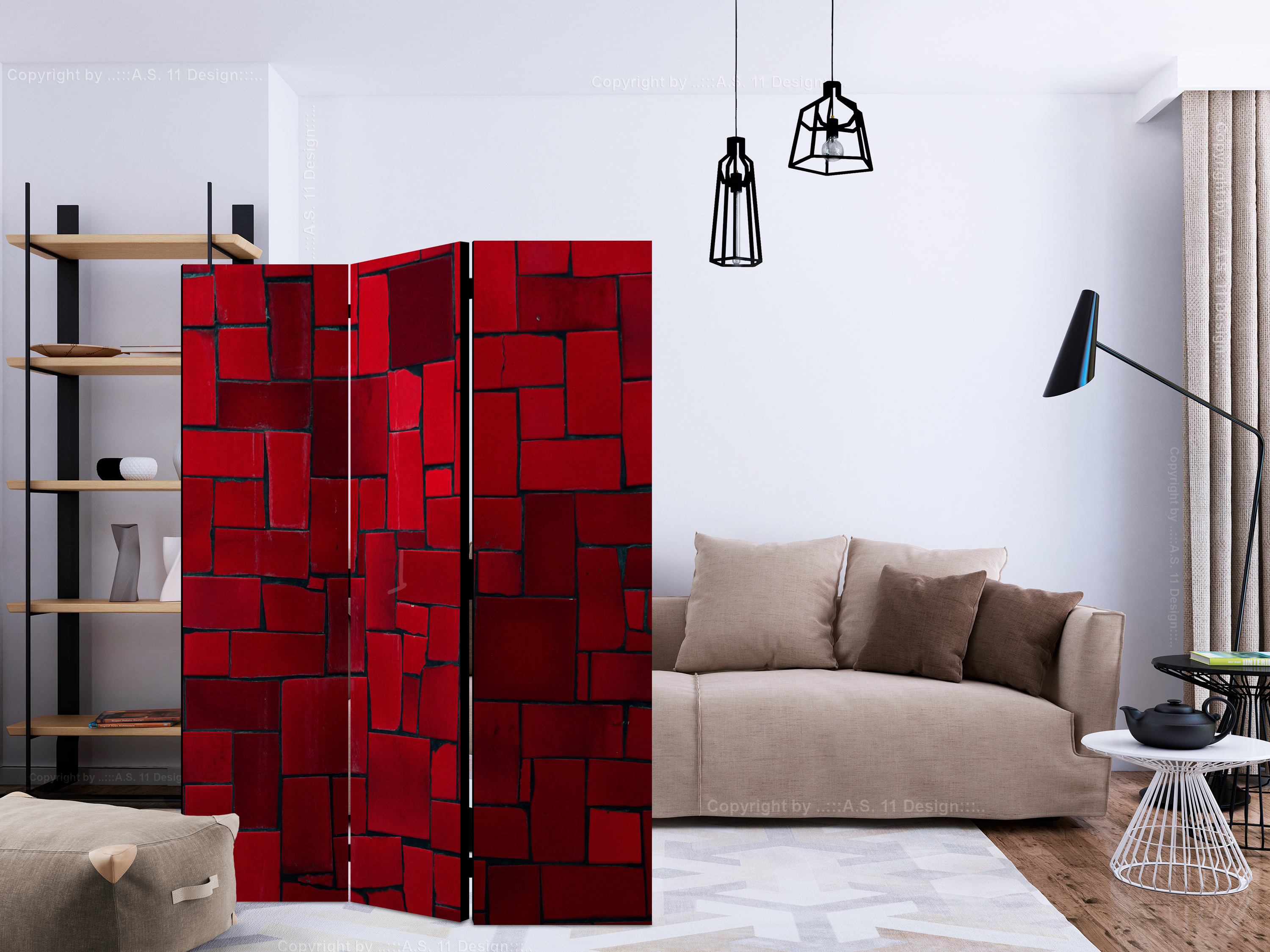 Paravent 3 volets - Red Imagination [Room Dividers] - 135x172