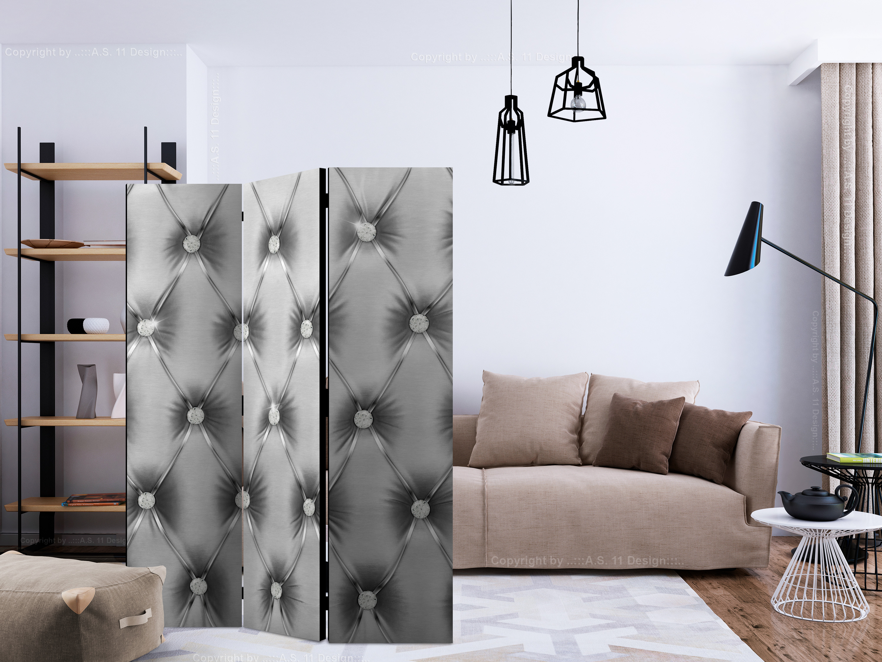 Paravent 3 volets - Silver Luxury [Room Dividers] - 135x172