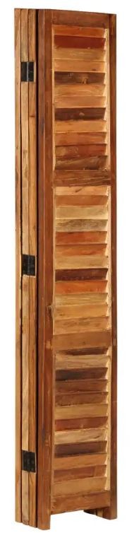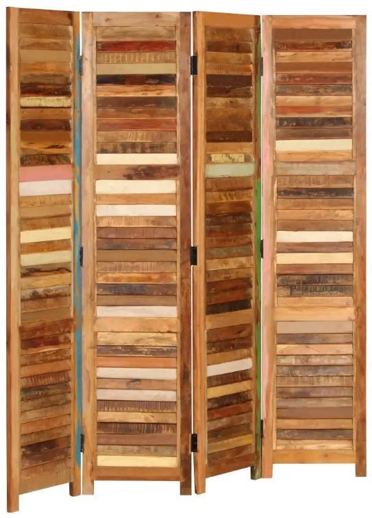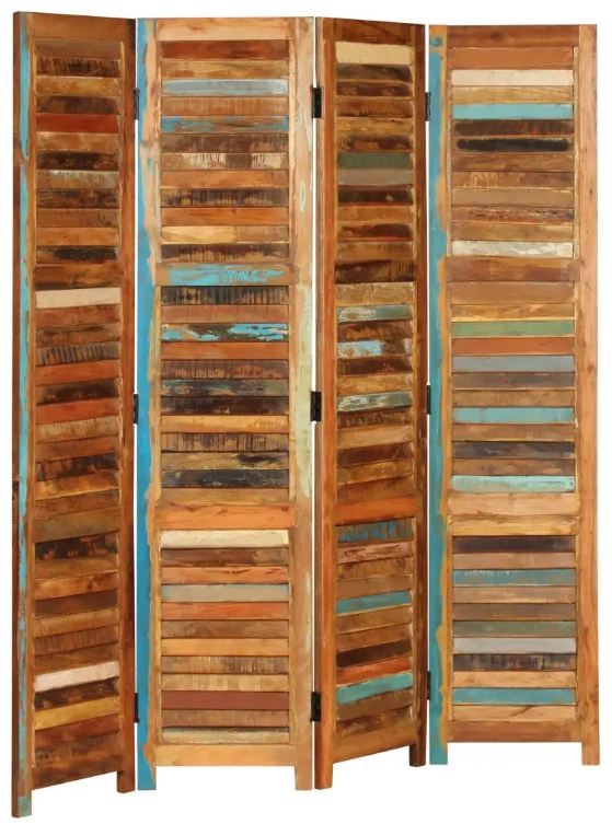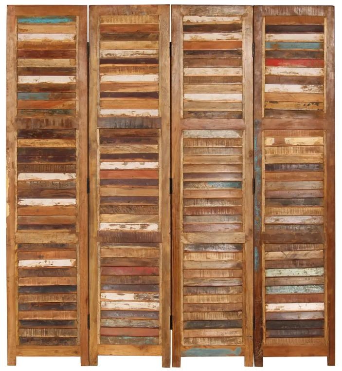 Un solide paravent en bois recyclé poli peint et laqué. Il dispose de 4 panneaux et son aspect vieilli lui confère un look vintage. Ce modèle est également disponible en d'autres dimensions. D'autres meubles de la même collection pourront venir compléter cet article et concevoir une décoration harmonieuse. Dimensions : l 40 x H 180 cm Épaisseur : 2.5 cm Matériau : Bois recyclé massif