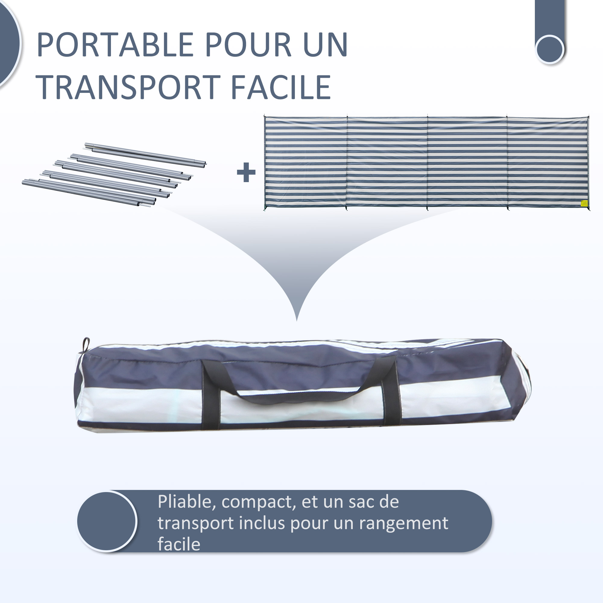 Paravent brise-vue de camping portable pliable avec sac de transport et poteaux dim. 540 cm x 150 cm acie