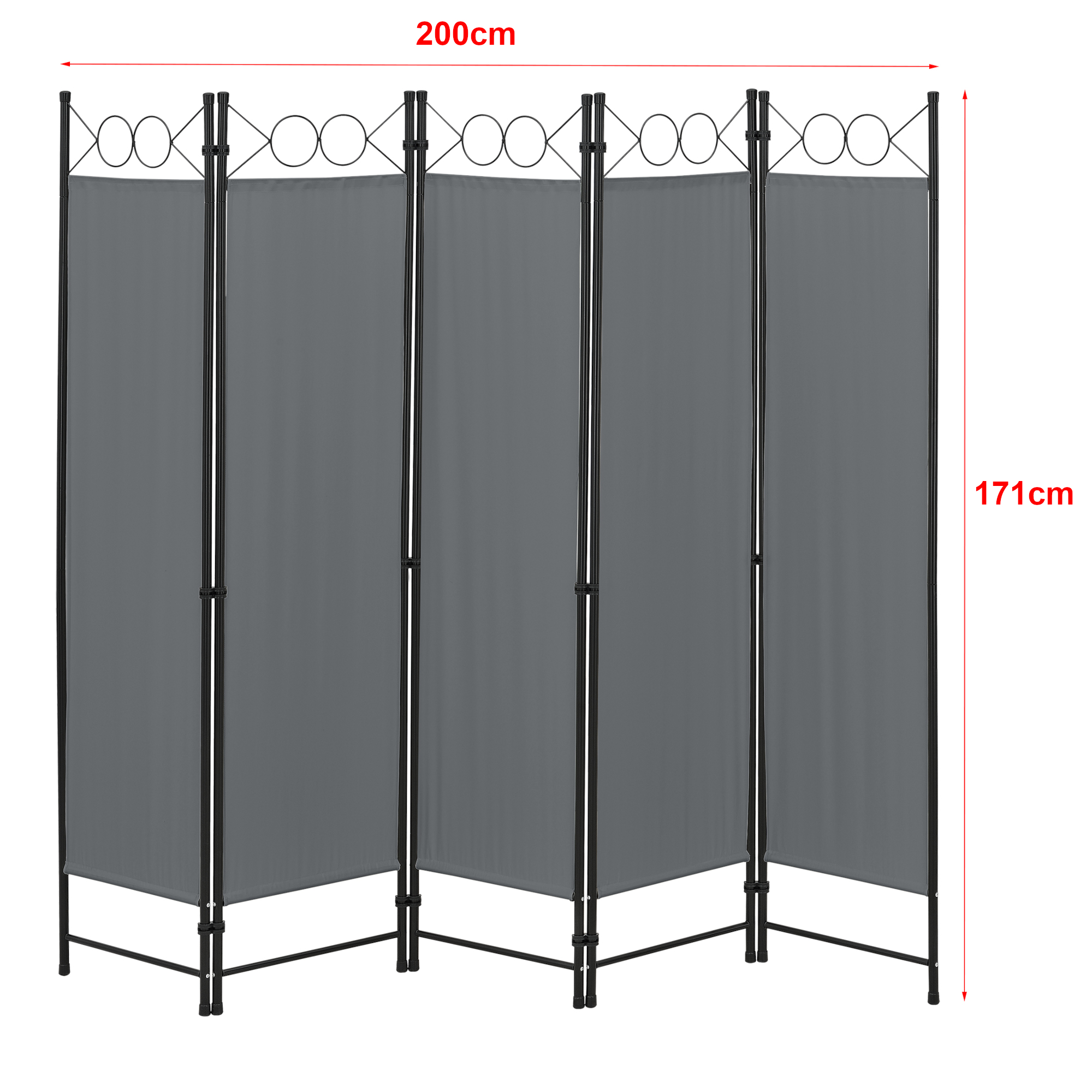 Paravent de Confidentialité à 5 Panneaux Saragossa 171 x 200 cm Gris Foncé [en.casa]