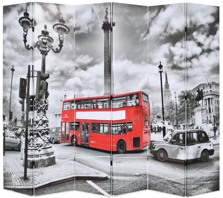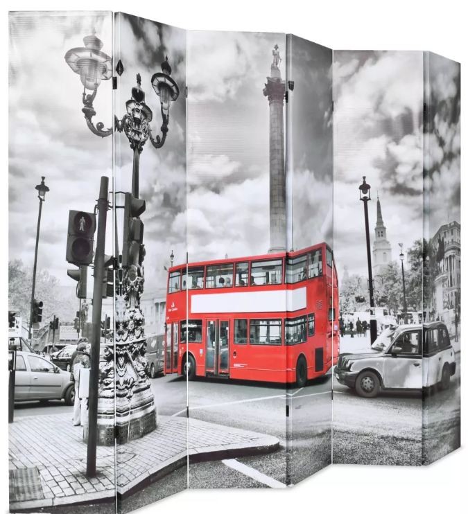 Un magnifique paravent disposant de 6 volets. Il est fait d'un cadre en bois avec une housse de toile imprimée d'une photo d'une rue de Londres avec un bus rouge des deux côtés. D'autres meubles de la même collection pourront venir compléter cet article et concevoir une décoration harmonieuse. Dimensions : L 228 x H 180 cm Matériau : Bois et house de toile Couleur : Noir et blanc