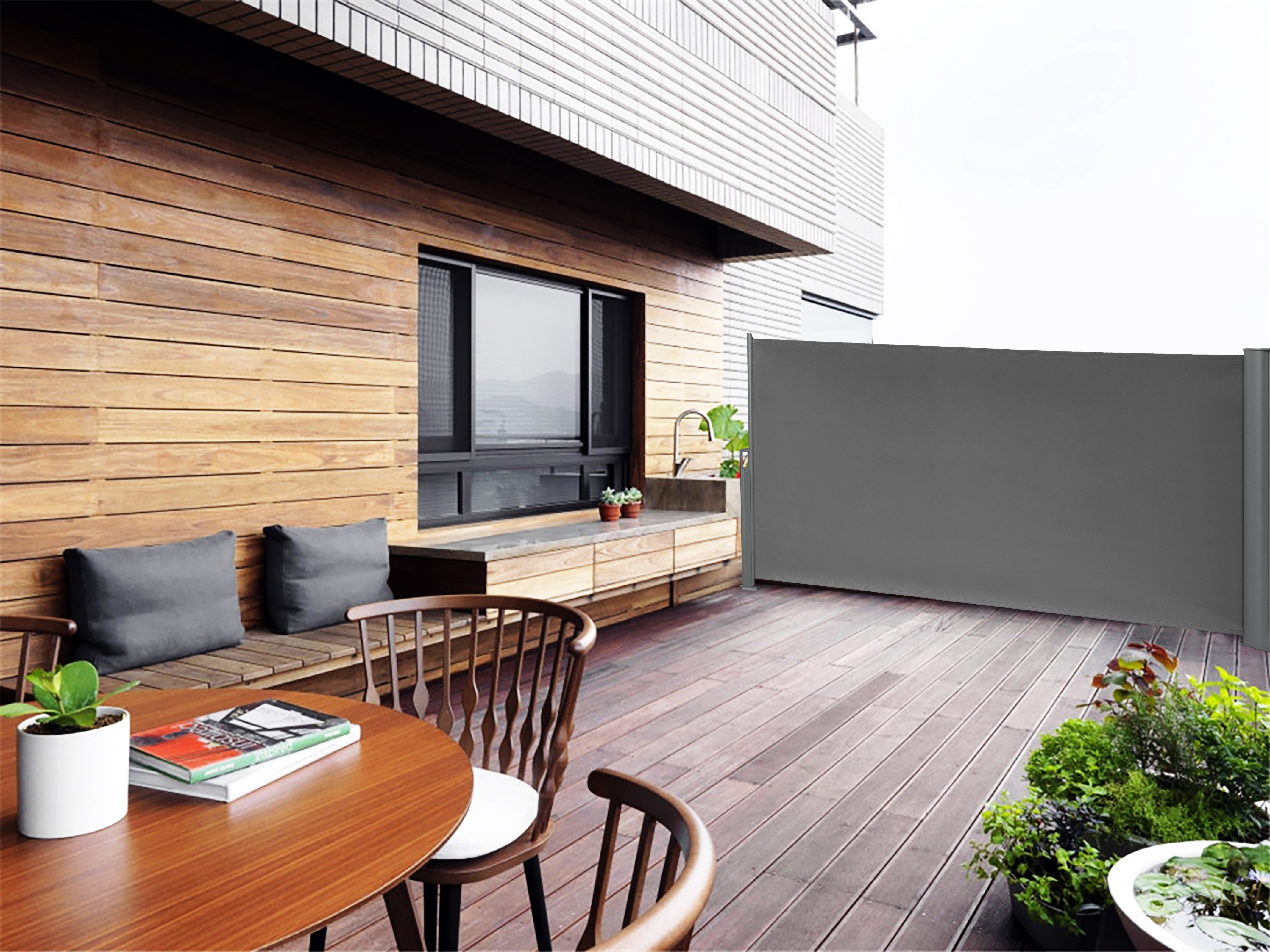 Paravent extérieur rétractable L.4 x H.1,60 m gris - Sélection d'Experts - Beaux Jours