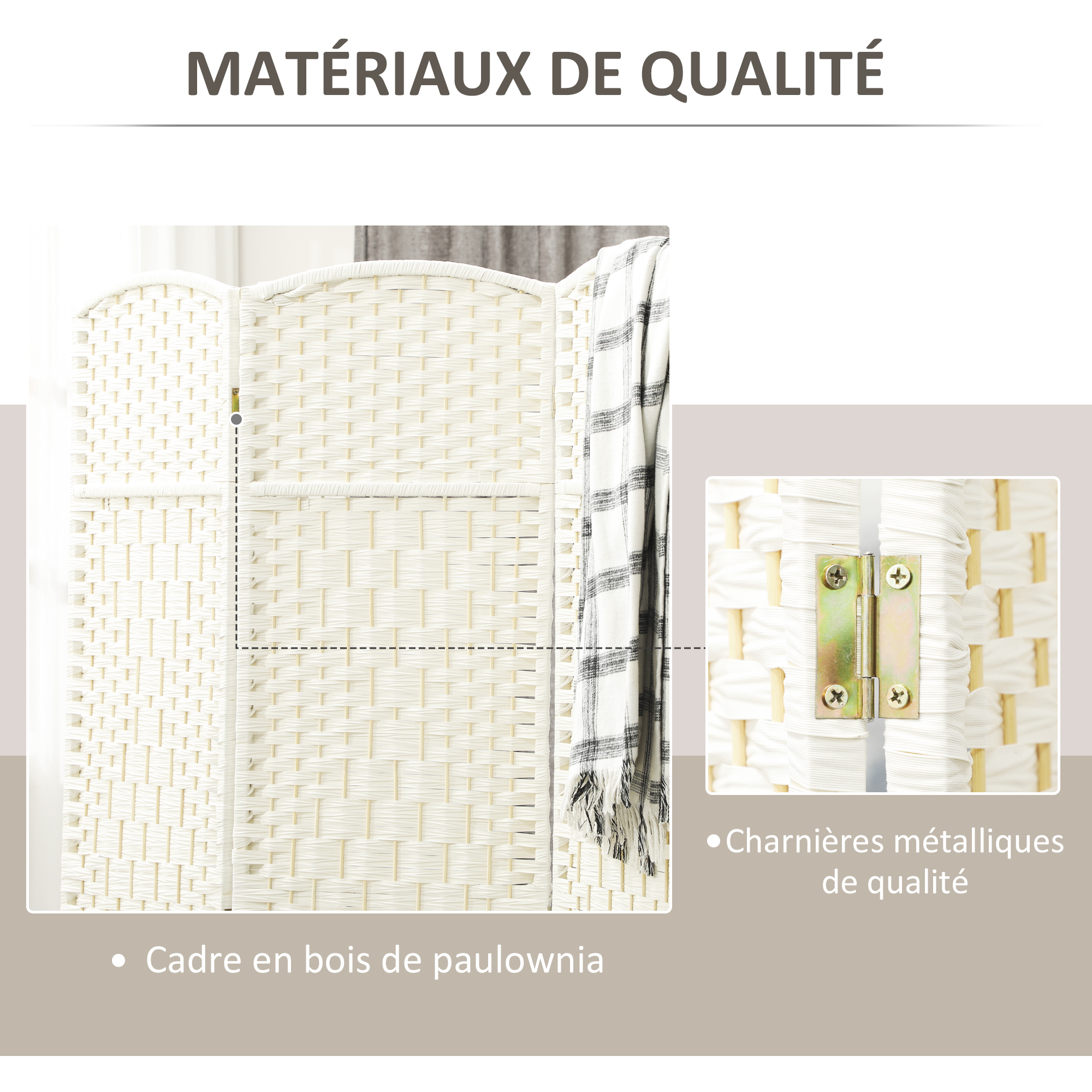 Paravent intérieur en bois 4 panneaux 180 x 180 cm séparateur de pièce pliable bois blanc