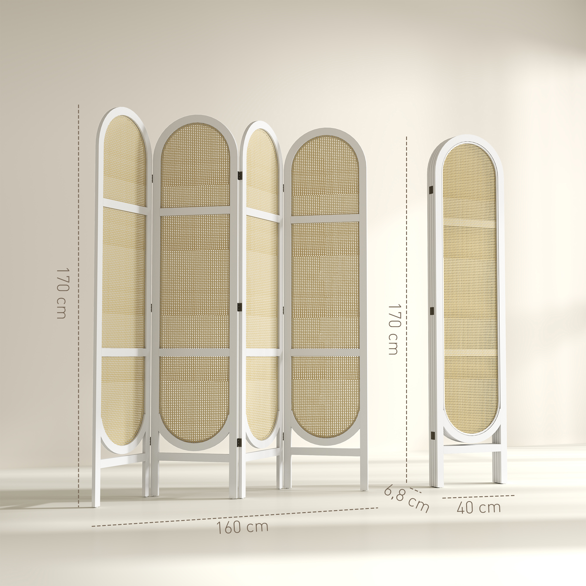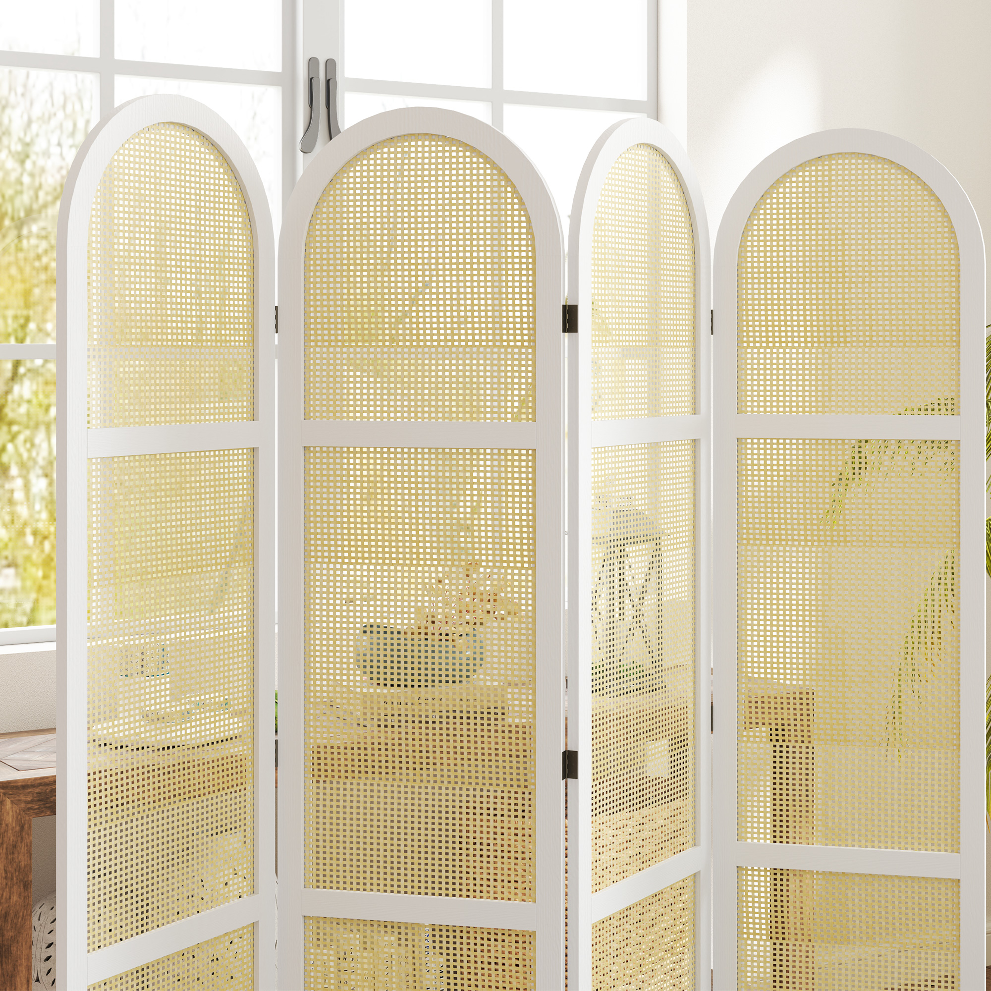 | Libellé | Paravent interieur pliable 4 panneaux 160 x 170 cm séparateur de pièce résine tressée effet rotin bois blanc |