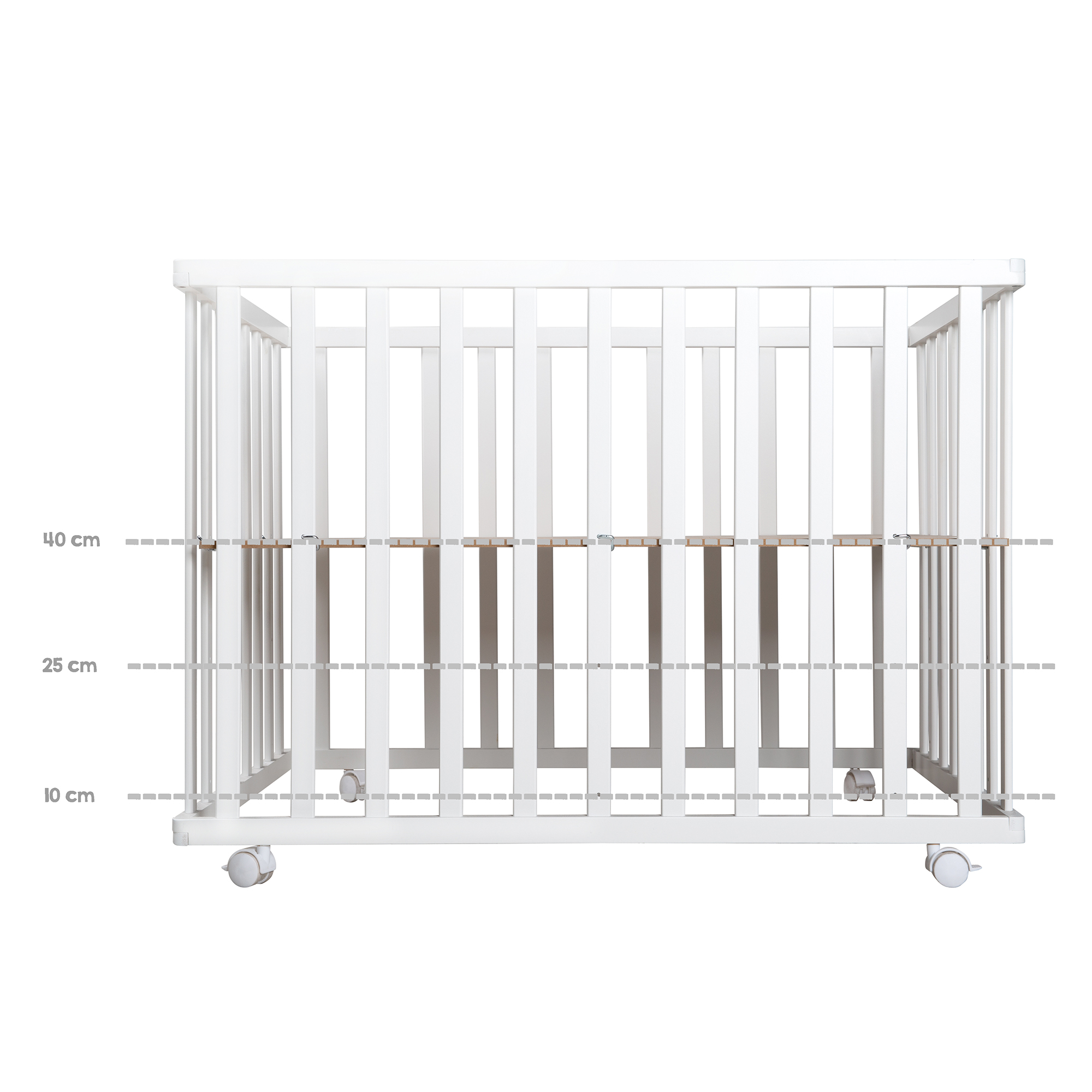 Le parc bébé pratique roba 75 x 100 cm est flexible et économisant l'espace, car il se glisse dans toutes les portes courantes d’appartement. Le parc certifié pour la sécurité est équipé de barres planes et d'un insert textile rembourré doux dans le design "Adam et Eule" et offre, grâce au tour de lit, une protection douillette tout autour. Le réglage à 3 hauteurs, adapté au dos, invite les parents à jouer avec leurs bébés. Les roulettes avec freins assurent une base solide et la mobilité nécessaire pour ce parc. La barrière de sécurité a été développée en Allemagne selon les actuelles normes de sécurité, conformément à la norme actuelle DIN EN 12227: 2010-12. Tous les matériaux utilisés sont certifiés et contrôlés régulièrement pendant la production et les textiles sont testé pour les substances nocives. La laque utilisée pour ce produit résiste à la salive et elle n’est pas toxique. Le parc peut être nettoyé avec un chiffon humide et le tour de parc peut être lavé dans la machine à laver. Le parc blanc de la marque roba a été testé pour une capacité jusqu'à 15 kg et garantit une aire de jeux magnifique et sûre dès la naissance et garantit une longue durée de vie et dans laquelle les enfants aiment découvrir le monde. Tous les produits roba sont créés sur la base de ses 90 années d'expérience, développés selon les normes de sécurité européennes, pensés avec intelligence et faits pour les familles.