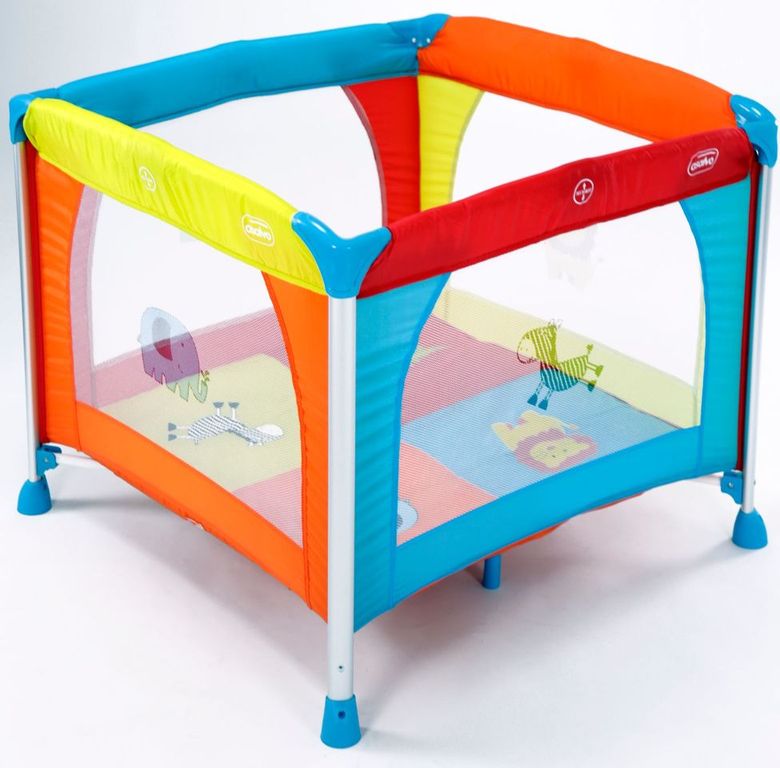 De 0 mois à 15 kg. Rapide et facile à assembler. Deux roues avec freins. Conception solide. Base rembourrée et sac de transport inclus. Pieds en aluminium. Double verrouillage de sécurité. Illustration dans le parc et les matelas. Textiles résistants à l'eau. Plastiques assortis textile dans les coins avec les mêmes couleurs. 4 côtés nets.