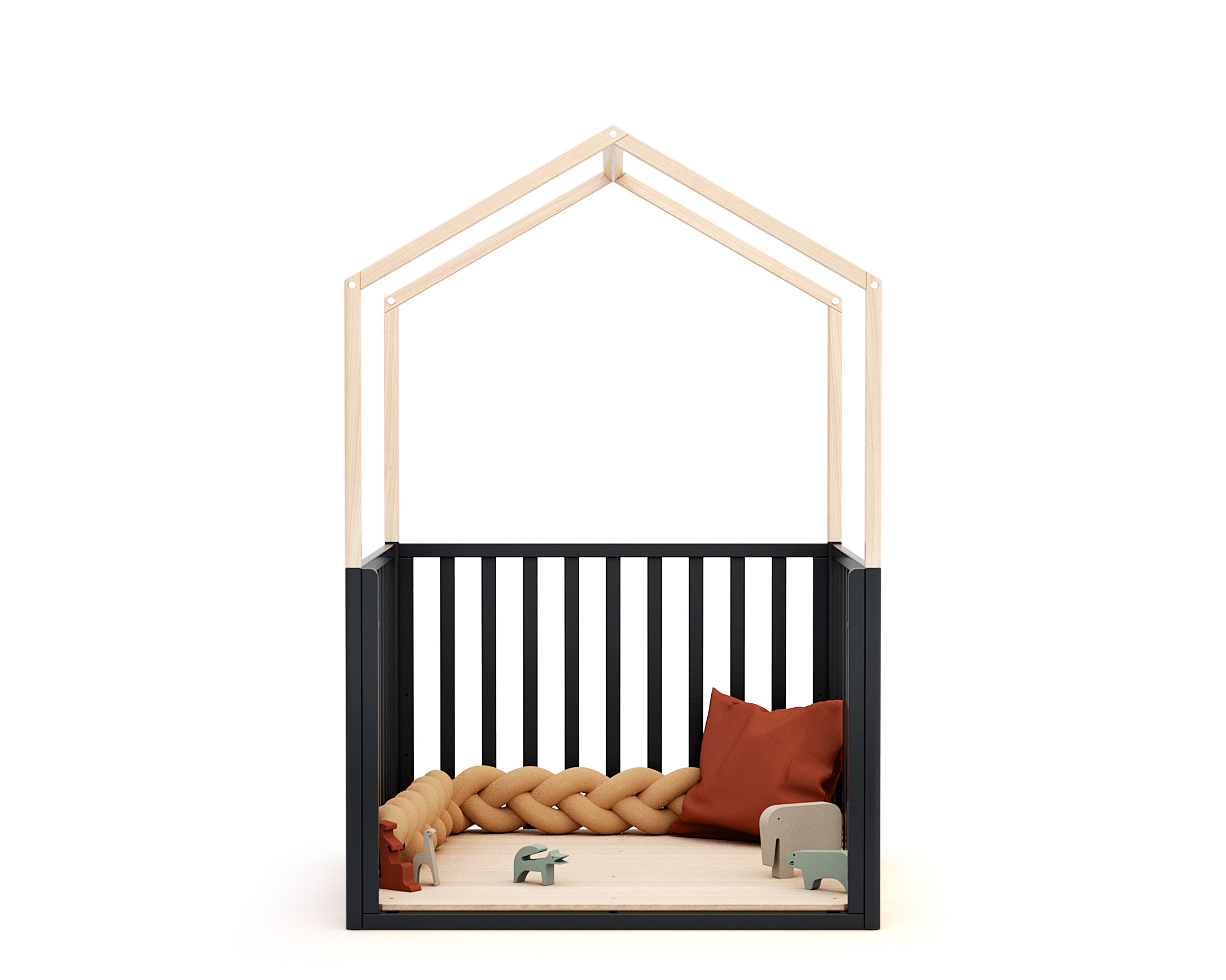 Sur pied ou au sol, ce parc évolutif bébé possède un côté amovible pour une utilisation cabane au sol !