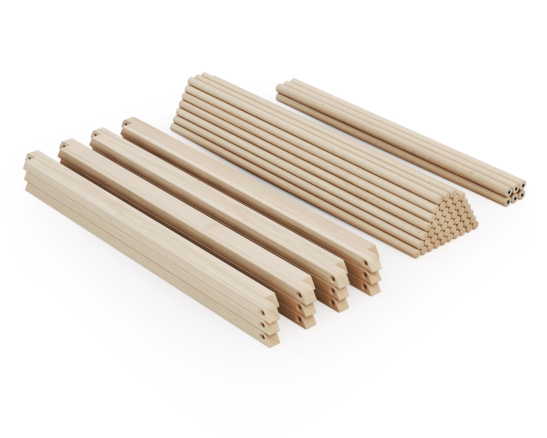 Fabriqué en bois de hêtre brut, ce parc bébé ALVÉO possède des barreaux ronds et pratiques pour les mains de bébé.
