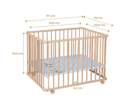 Les caractéristiques et fonction du parc pour bébé Belami Plus rectangulaire en bois en détail :