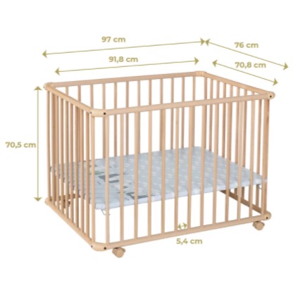 Les caractéristiques et fonction du parc pour bébé Belami Plus rectangulaire en bois en détail :
