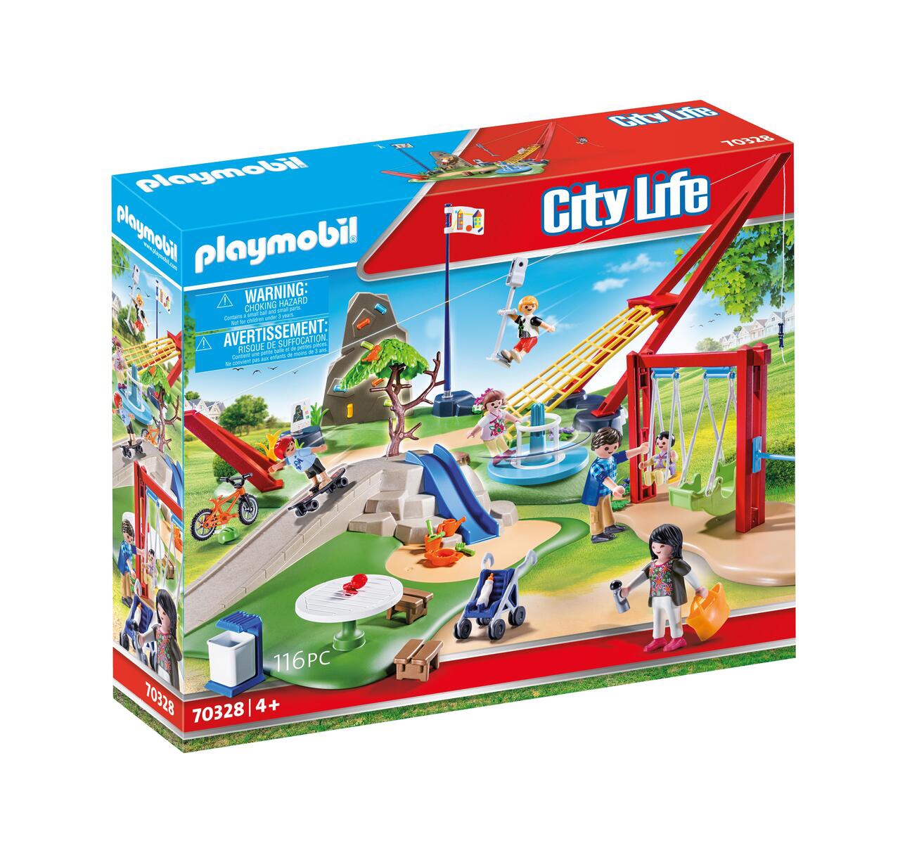 Contient six personnages et différentes activités : escalade, balançoire, toboggan, tyrolienne et de nombreux accessoires.