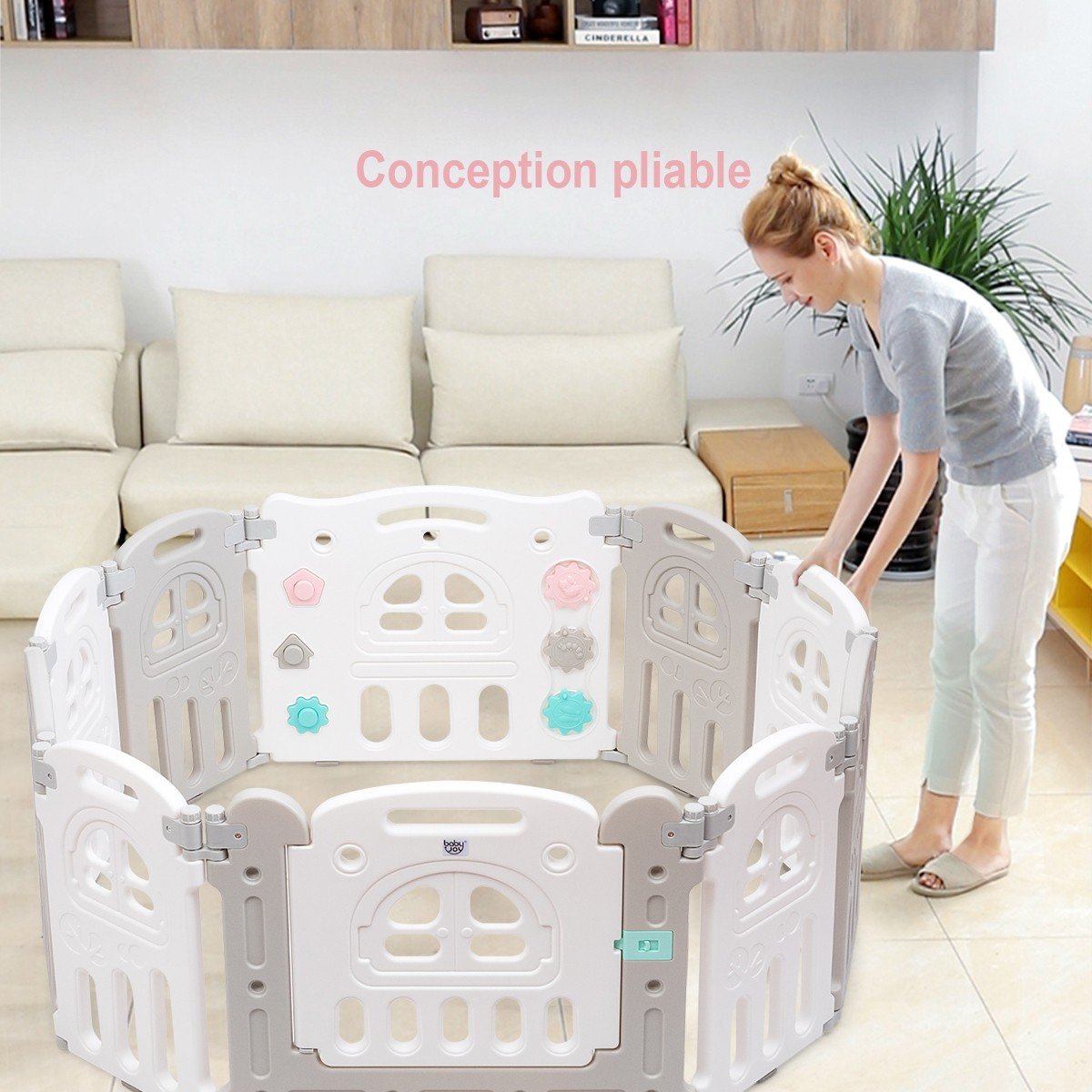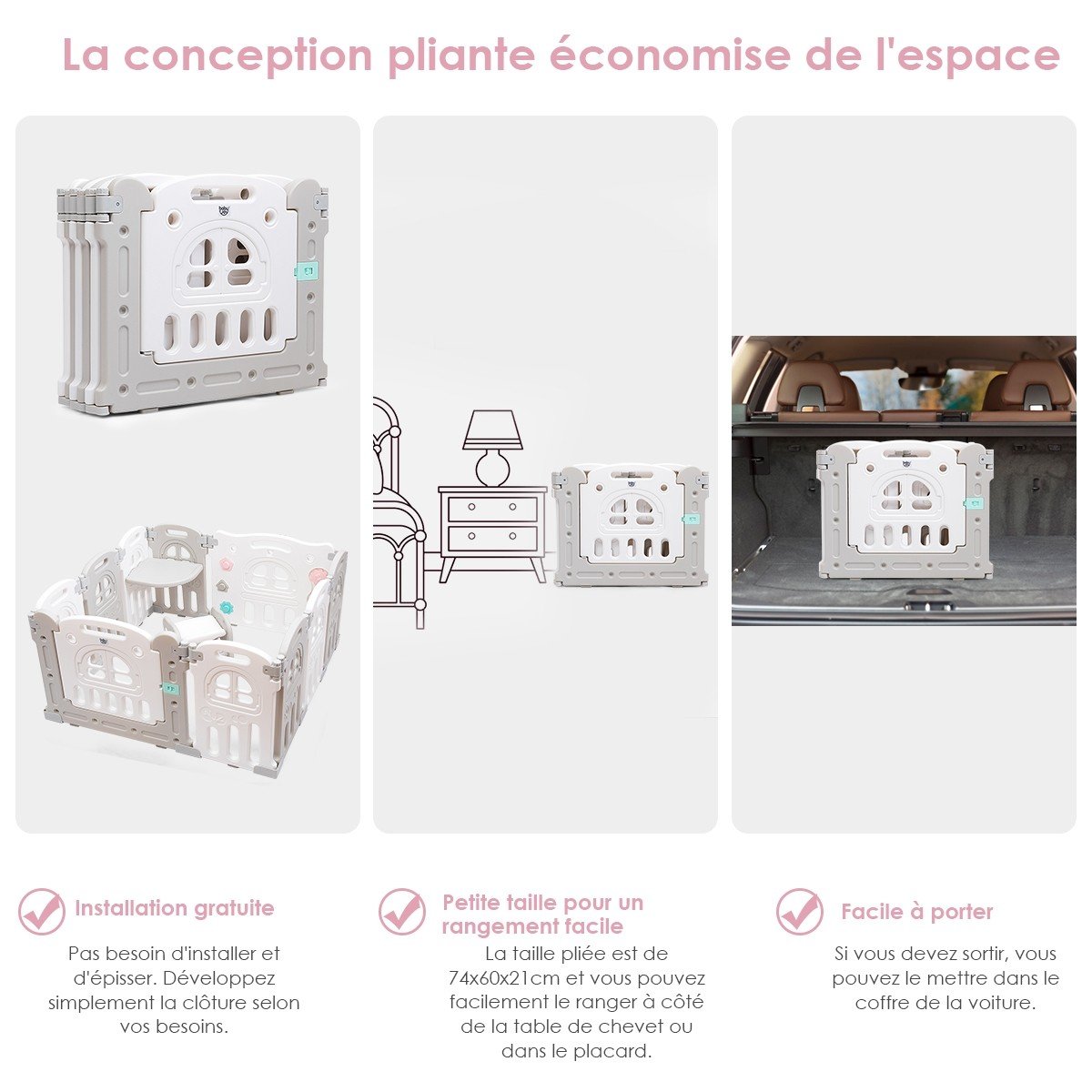 Parc pour bébé équipé d'une table et d'un tabouret pour que votre bébé puisse jouer ou dessiner. Fabriqués à partir de matériaux sûrs et durables en PP, nos parcs ne nuiront pas à la santé de votre bébé. Le verrou de sécurité sur la porte empêche le bébé de sortir. Le repose-pied antidérapant situé au bas du panneau rend difficile le basculement et le déplacement. Vous pouvez l'installer dans n'importe quel endroit idéal pour avoir le temps de faire le ménage ou de vous détendre. Il est facilement pliable et déplaçable, pour gagner de l'espace ou le ranger. Il compte un total de 10 pièces que vous pouvez combiner selon vos besoins. En augmentant ou en diminuant le nombre de panneaux, vous pouvez les combiner en carrés, rectangles, hexagones ou octogones pour créer différentes tailles d'espace de jeu pour vos enfants. Caractéristiques: Panneau de renforcement de 60 cm Matériau en PP sûr et durable assure la sécurité de votre bébé Verrou de sécurité à l'extérieur de la porte Jouets/accessoires Possibilité de combiner les panneaux Conception pliable pour un déplacement facile Couleur : Gris + Blanc Matériel : PP Taille de la petite clôture : 60cm x 36cm x 3cm Taille de la clôture de porte : 74cm x 60cm x 3cm Taille de la clôture de jeu : 74cm x 60cm x 3cm Poids du produit : 12,3 kg Epaisseur : 3 cm Tableau d'activités : Sondeur, table tournante Livraison : 8 x petite clôture 1 x clôture de porte 1 x clôture de jeu 1 x petite tablette 1 x siège 1 x clé à vis 1 x clé à écrous 1 x manuel d’instruction Attention: Les livraisons se font en France métropolitaine à l'exception des îles qui ne sont pas reliées au continent par un pont (Corse, Ile d'Yeu, etc.). Livraison en 3 à 7 jours ouvrables.