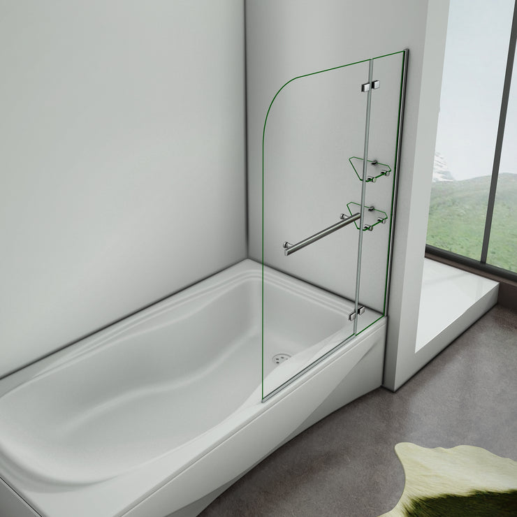- 5mm verre securit transparent - Pare-baignoire pivotant, finition Chromé, avec porte-serviette en Inox et 2 étagères en verre