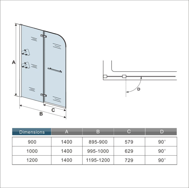 Pare baignoire pivotant 90°- 90x140cm - En aluminium - Chromé - AICA - En verre trempé clair - Avec porte