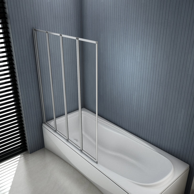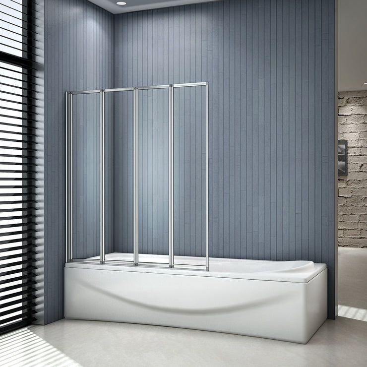 Pare baignoire pliant 180°- 100x140cm - En aluminium - Chromé - AICA - 4 volets - En verre trempé clair